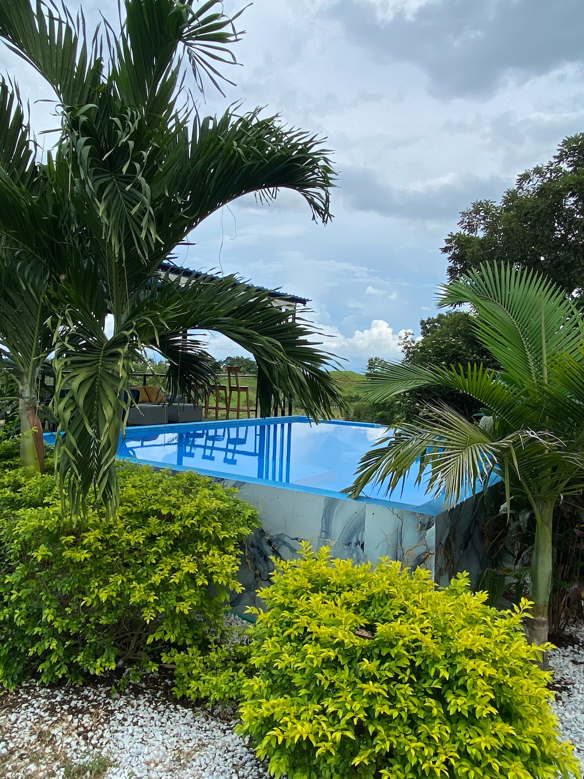 Parcela la cascada A tan sólo 5 minutos del casco urbano Consta de 1 hbt para 10 personas 2 hbt óctuples 3 hbt cuádruples Cada hbt cuenta con su baño interno Aire acondicionado TV Ventilador WiFi Sala comedor TV en la sala 3 baños sociales 9 baños en total 2 cocinas dotadas 2 neveras 1 congelador Zona de lavado 2 bafles de sonido 1 asador Hamacas 1 kisco grande 1 piscina adultos 1 piscina niños Zonas verdes