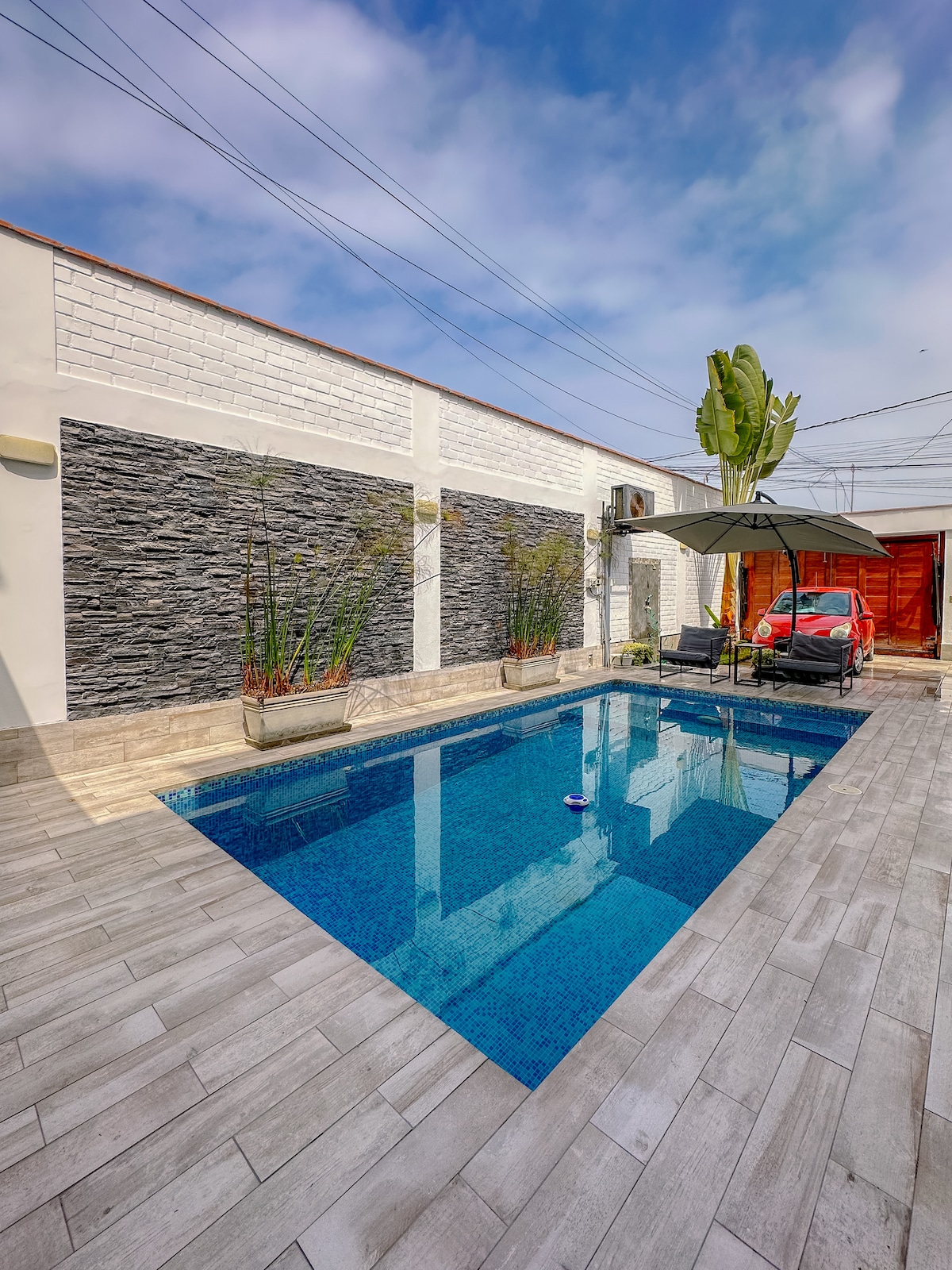 Disfruta de una casa amplia y acogedora en Punta Hermosa, a solo 10 minutos caminando de la playa Pulpos. Relájate en la piscina privada, comparte momentos en la parrilla y aprovecha el estacionamiento para 3 autos. Zona segura con vigilancia 24h y cerca de restaurantes, tiendas y gasolinera. Ideal para familias o grupos que buscan comodidad y diversión cerca del mar