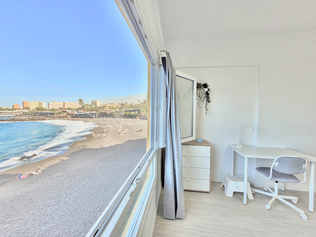 Estancia con fachada directa al mar donde podrá disfrutar de las vistas y puestas de sol espectaculares, en zona peatonal muy tranquila, dentro de un pueblo maravilloso en el que tendrá entre otros servicios: transporte público (bus, taxi), aparcamientos públicos gratuitos, restaurantes, comercios de alimentación, ambulatorio (a quince "15" minutos caminando), hospital ( a veinte "20" minutos). Excepcional para descansar. A cinco "5" minutos caminando se encontrará en Playa Jardín.