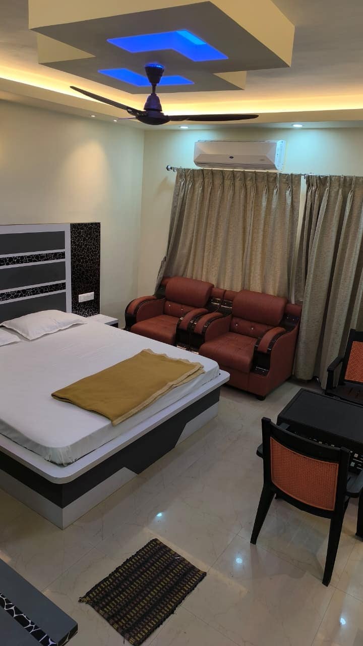 It's a very spacious room with balcony. Well Interior with kitchen accessories. Cloud kitchen also available, food can be delivered at your door steep option available. Guest house is nearer to beach & temple. Ample space for parking available. Another 17nos of rooms also available, can be given. Cab facility also available.