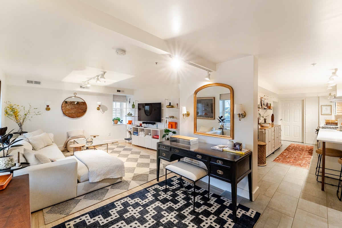 Designer 2BR in historic 1870 brick building with shared backyard oasis (covered lounges, fire pit, creek views). Walk the scenic abandoned railway tracks alongside Fishkill Creek to Main Street and the Roundhouse waterfall in 10 min. Design by Hudson Valley fixture Simone Eisold and art by Guggenheim Fellowship winning photographer Amanda Means. Two dedicated parking spots. Ask about upgrading to the private patio with treetop hot tub & Mt. Beacon vistas! [Permit: 2024-0027-STR]