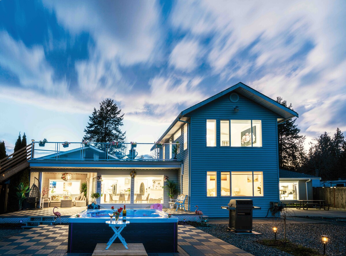Rilassati mentre ammiri l'oceano e ascolti le onde dal nostro accogliente chalet con una vista indimenticabile. Fai una passeggiata lungo il vialetto fino alla spiaggia privata del resort sottostante, fai un giro nei nostri kayak e goditi un falò in uno dei bracieri mentre cala il crepuscolo. Appena a nord di Qualicum Bay, nella città di Bowser, ti troverai nel cuore della città delle vacanze!