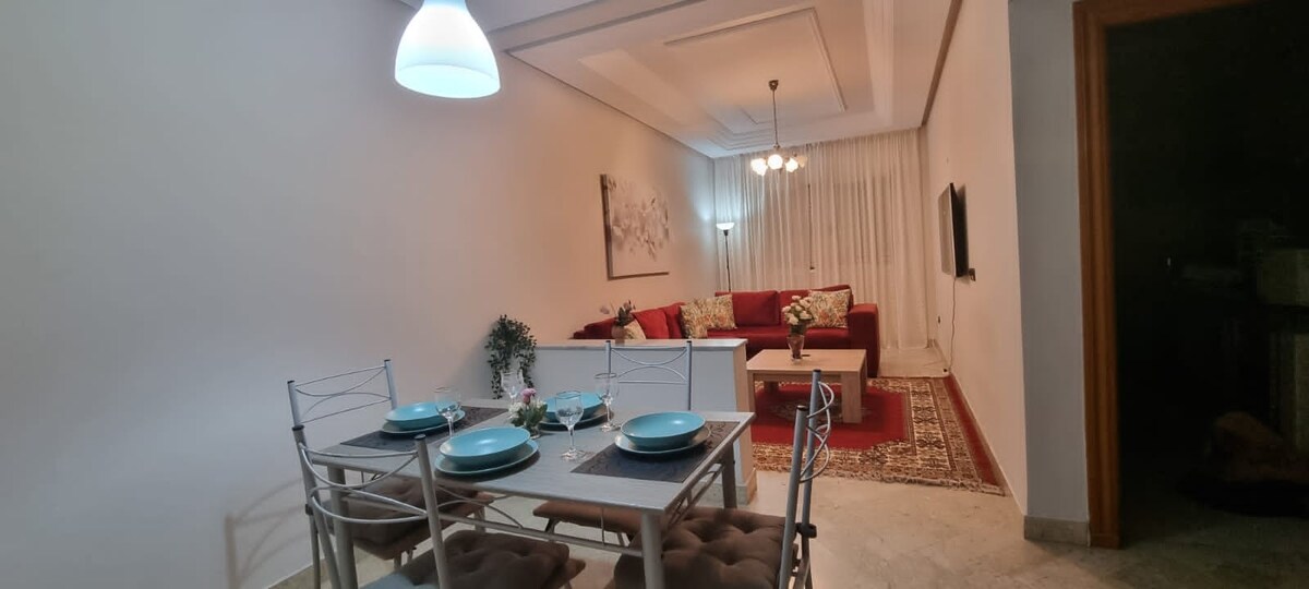 Benvenuti in questo grazioso bilocale completamente ristrutturato. Tutto è stato fatto e pensato nella semplicità e nel comfort per soddisfare le vostre esigenze in modo che vi sentiate come a casa vostra e non vi manchi nulla. Il punto forte di questo appartamento è la sua grande terrazza semi-coperta per godere all'aria aperta delle giornate di sole. Quartiere centrale a 50 metri dalla stazione del tram, a 5 minuti a piedi dal mausoleo e a 5 minuti di auto dal fiume Bouregreg e dal porto turistico. Vi auguro un piacevole soggiorno.