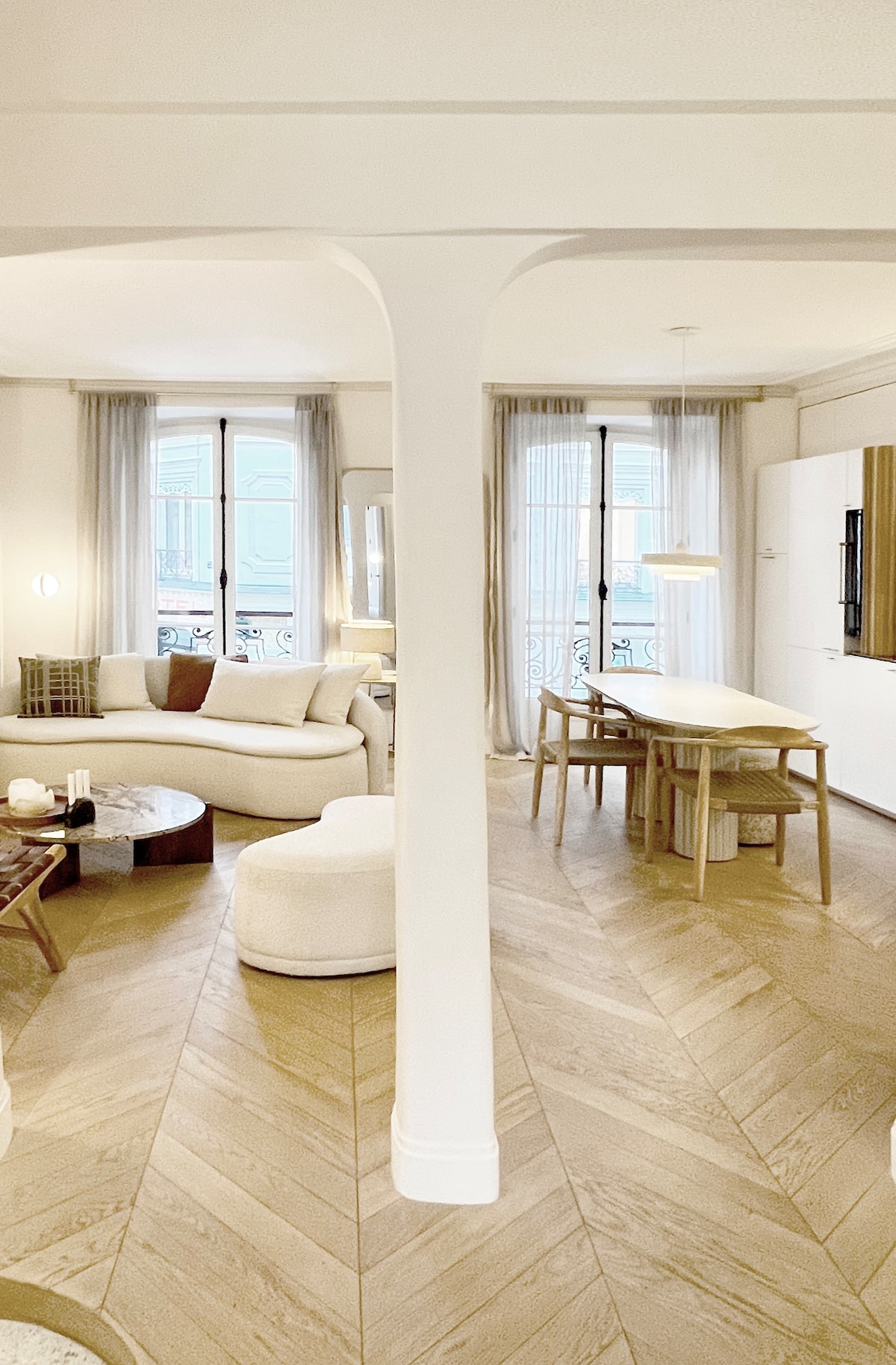 Boasting herringbone parquet flooring, fine furnishings and abundant natural light, this sophisticated 110m2 apartment offers a bright, elegant, warm and luxurious atmosphere. The apartment, with fireplace and moldings, combining charm, calm and comfort is located in one of the oldest passages in the historic center of Paris. This apartment has an official tourist accommodation operating license. So it's perfectly legal.