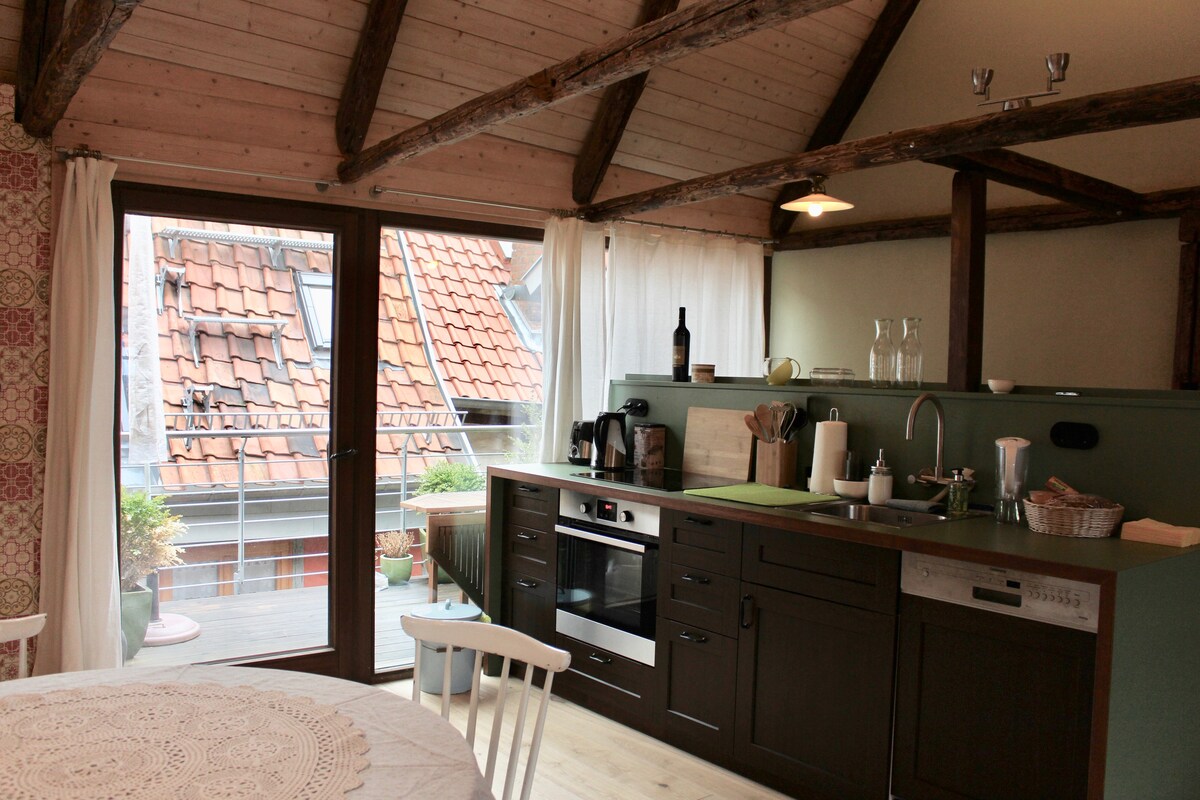 Ti diamo il benvenuto a Quedlinburg, Patrimonio dell'Umanità dell'UNESCO, questo incantevole appartamento non fumatori è in affitto a pochi passi dal mercato, dal castello e dalle varie strutture per conferenze. L'appartamento al piano terra è stato completamente ristrutturato all'inizio del 2021 esclusivamente con materiali organici, come argilla, vero pavimento in legno e pitture a parete a base naturale. In totale lo spazio abitativo è suddiviso in circa 55 mq con 2 camere. 100 Mbit/s WLAN - mobile work ready