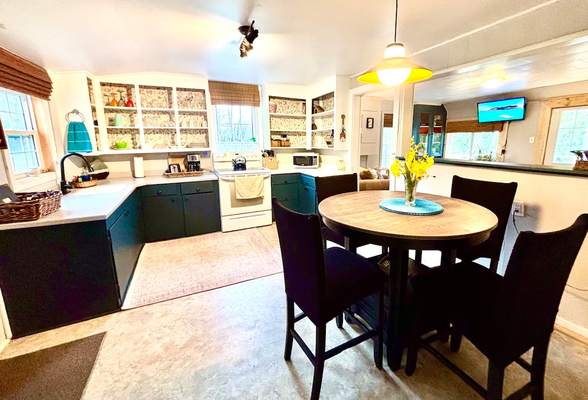 Cottage con soppalco con 1 camera da letto restaurato lungo le rive del fiume Salmon. Questa proprietà sul lungomare è ideale per chi cerca pace e tranquillità circondati dalla natura, ma si trova in città e vicino ai servizi. Accomodati accanto a un caminetto elettrico. Completo di forniture per la cucina. Cucina open space con piano cottura a induzione. Tutto ciò di cui avrai bisogno è in loco. Forno a microonde. Aria condizionata. Alloggi per massimo due persone