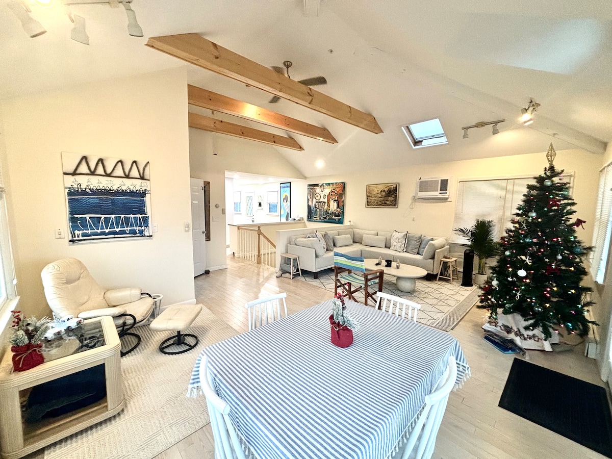Goditi la vista sull'oceano e sulla baia sorseggiando la tua bevanda preferita dalla terrazza sopraelevata. A pochi passi dall'Oceano Atlantico e da tutti i negozi, bar e ristoranti del West End. A pochi passi dal lungomare di Long Beach e da tutti i festeggiamenti. L'annuncio è per la parte superiore della casa, come si vede nelle foto. Facile viaggio in treno o in traghetto per New York. Vicino all'aeroporto JFK. Pass per la spiaggia, sedie a sdraio, boogie board e ombrellone forniti. Accettiamo ospiti di età superiore ai 25 anni