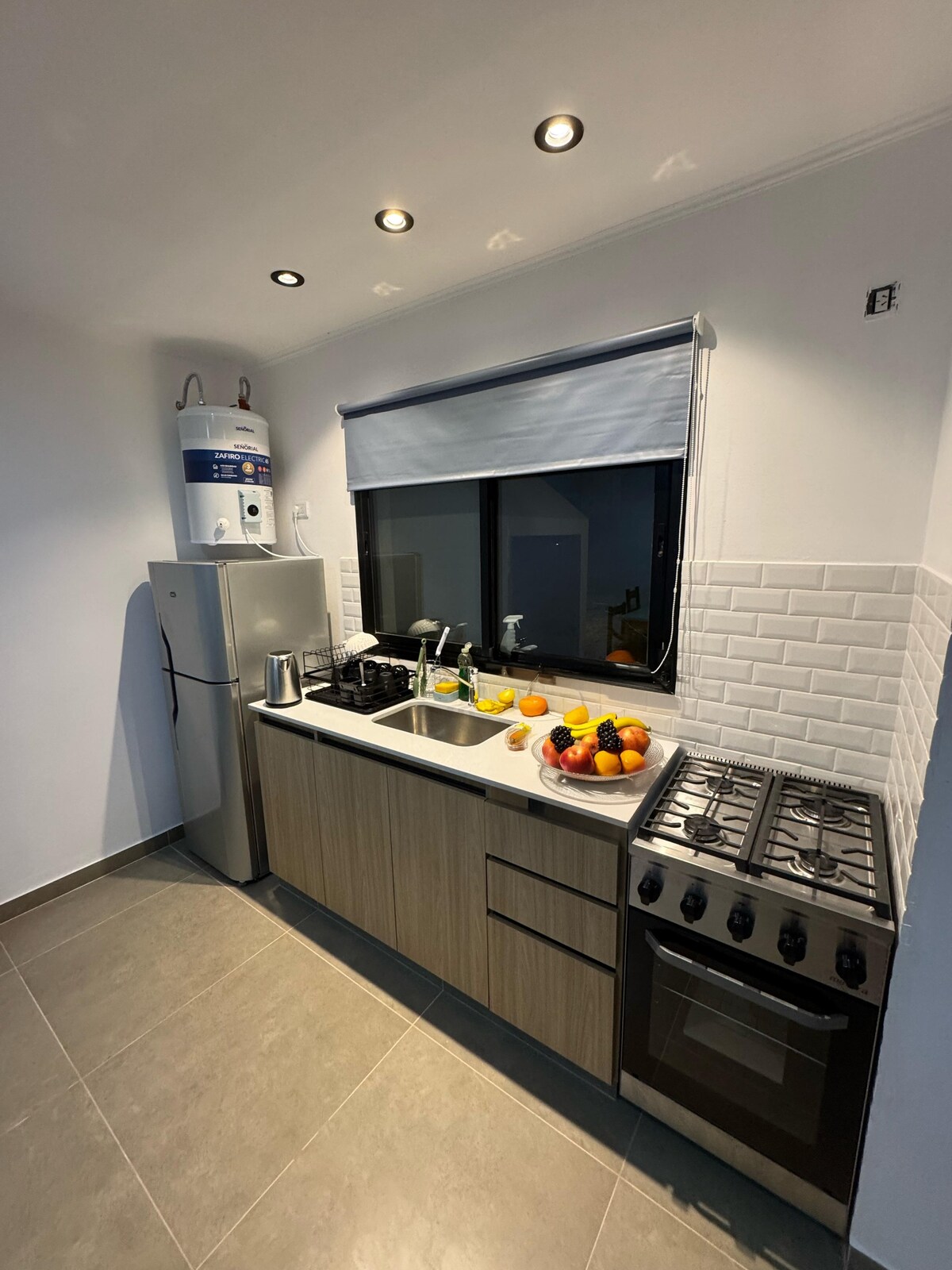 Posee mobiliario completo ya que es una construccion que se estreno hace pocas temporadas. Ubicada detrás de una casa, al cual se accede por un porton brindando seguridad y tranquilidad. Dispone de todos los servicios (incluyendo wi-fi y cable). Escritorio de trabajo y más. Nueva parilla construida en el patio compartido, muy cómoda para cenar afuera. A 800 metros de la Playa,700 de la peatonal y 900 parque En un radio de 100 metros encontrará locales comerciales de interes