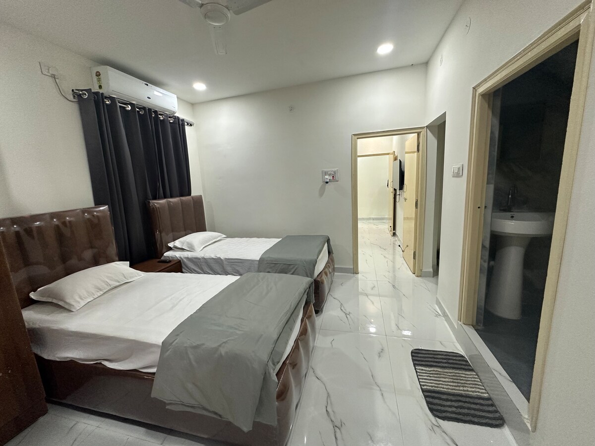 Experience luxury and comfort in our Executive Suite in Hyderabad, This elegantly furnished suite features a spacious bedroom, modern ensuite bathroom, high-speed Wi-Fi, air conditioning, and a dedicated work desk. Located in a prime area with easy access to IT hubs, shopping centers, and restaurants, it offers both convenience and class. Enjoy daily housekeeping, 24/7 security, and a peaceful environment ideal for work or relaxation.