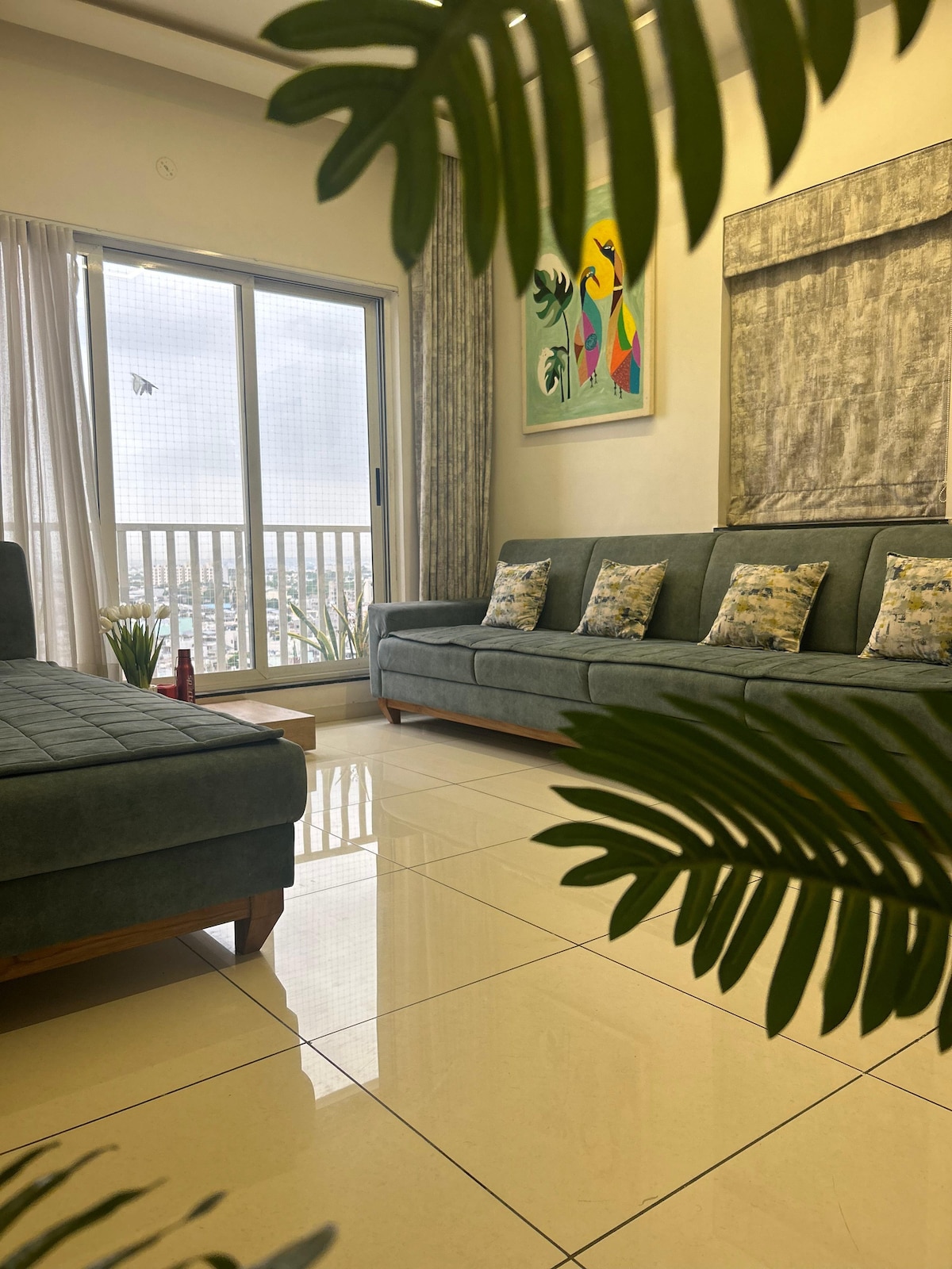 Appartamento spazioso ben arredato con camere con aria condizionata con cassettiera/armadio, letto king size con bagno annesso. Splendido e ventilato e grazioso balcone con vista sul giardino, wifi gratuito, si sente come a casa propria. Appartamento senza zanzare e senza polvere Questo alloggio è perfetto per le famiglie NRI. Tranquilla, confortevole e sicura. Cucina con tutti gli elettrodomestici e utensili. Negozio di alimentari e verdure a pochi passi. Sconto mensile e settimanale sulle tariffe. Orario di check-in flessibile.