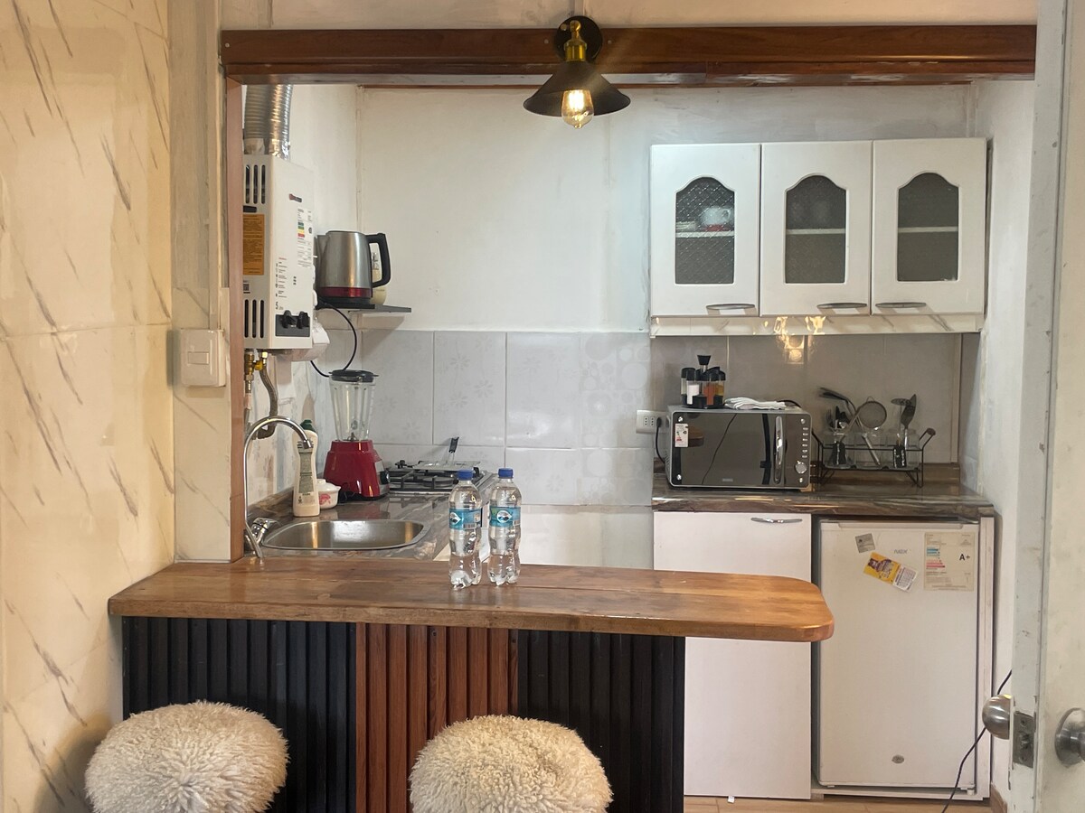Accogliente monolocale nel cuore di Rancagua Questo moderno monolocale è pensato per offrirti comfort e funzionalità. Tutto ciò di cui hai bisogno per due persone Cucina completamente attrezzata Area relax e intrattenimento Bagno ben attrezzato Posizione eccellente: A soli 5 minuti dal Terminal O'Higgins A 6 minuti dal terminal dei treni A 4 minuti a piedi dall'Università O'Higgins Facile accesso ai mezzi pubblici dalla strada