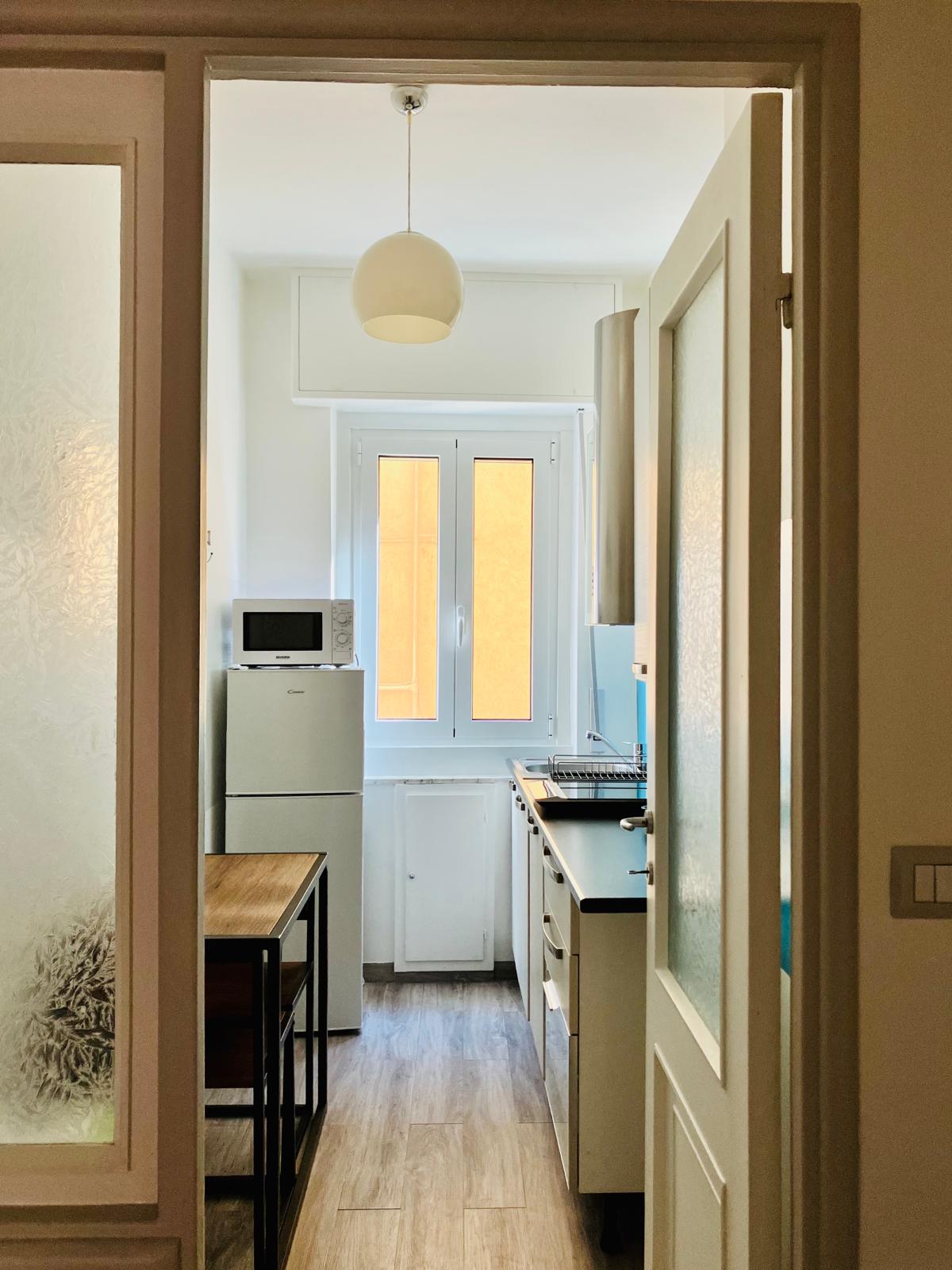 Grazioso appartamento situato nel centro storico di Rapallo. Posta a pochi metri dal lungomare, la casa è costituita da un ampio ingresso con armadio a muro e aria condizionata, un soggiorno con tv e divano letto, una cucina dotata di lavastoviglie e fornelli a induzione, una camera matrimoniale e un bagno con doccia e lavatrice. Rapidamente raggiungibile a piedi dalla stazione, l'appartamento è in prossimità dell'imbarco dei battelli e di diversi parcheggi a pagamento.