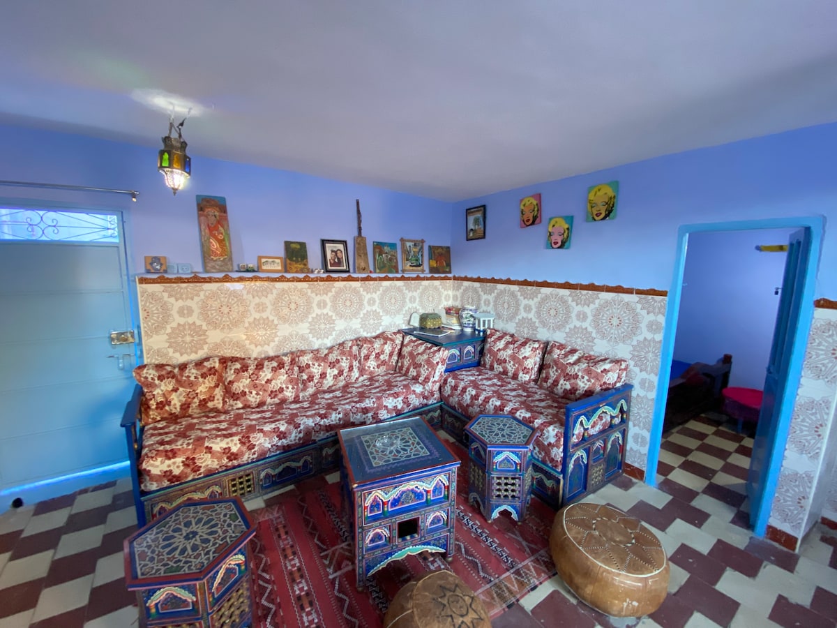 La nostra casa si trova in un quartiere tranquillo all'interno della medina blu e tuttavia tutto è vicino. Si trova a cinque minuti a piedi dalla cascata e dal grande mercato. La cucina è completamente attrezzata, c'è una vasca da bagno che è meravigliosa in inverno. Sulla terrazza si è completamente fuori dalla vista di tutti e si gode della vista sulle montagne e sulla moschea spagnola. In inverno c'è anche una stufa. Sei in Marocco e hai comunque il comfort di casa.