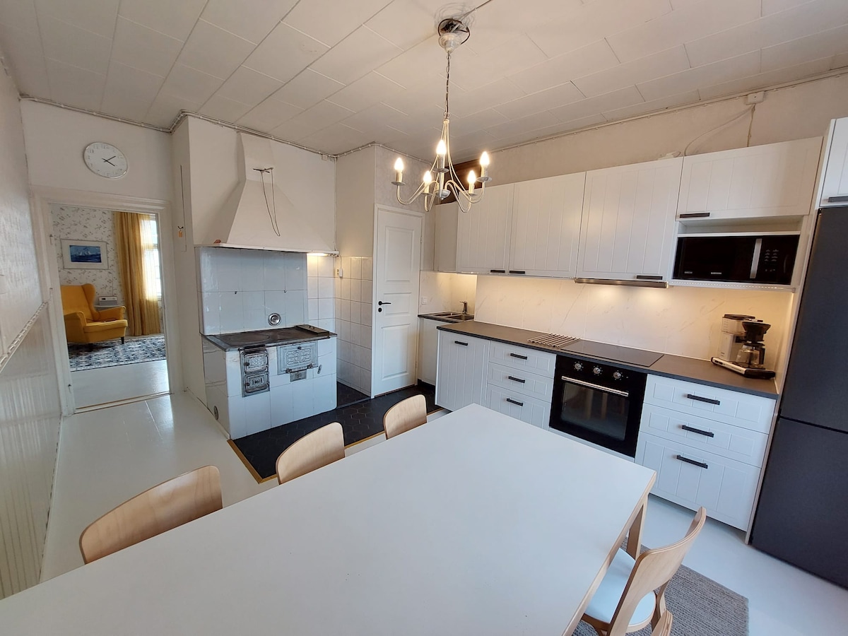 Spring is here and this idyllic place is perfect for a little get-away or a holiday with the whole family. To the old town it is 20 minutes on foot The 102 year old wooden Villa is located in a calm central location of Ekenäs. The guest apartment is situated on the second floor. It has a fully equipped kitchen for self catering, a private WC, two cosy bedrooms and a third sleeping space in the hall. The shower is in the shared bathroom downstairs, where I have my living quarters. Welcome 🤗
