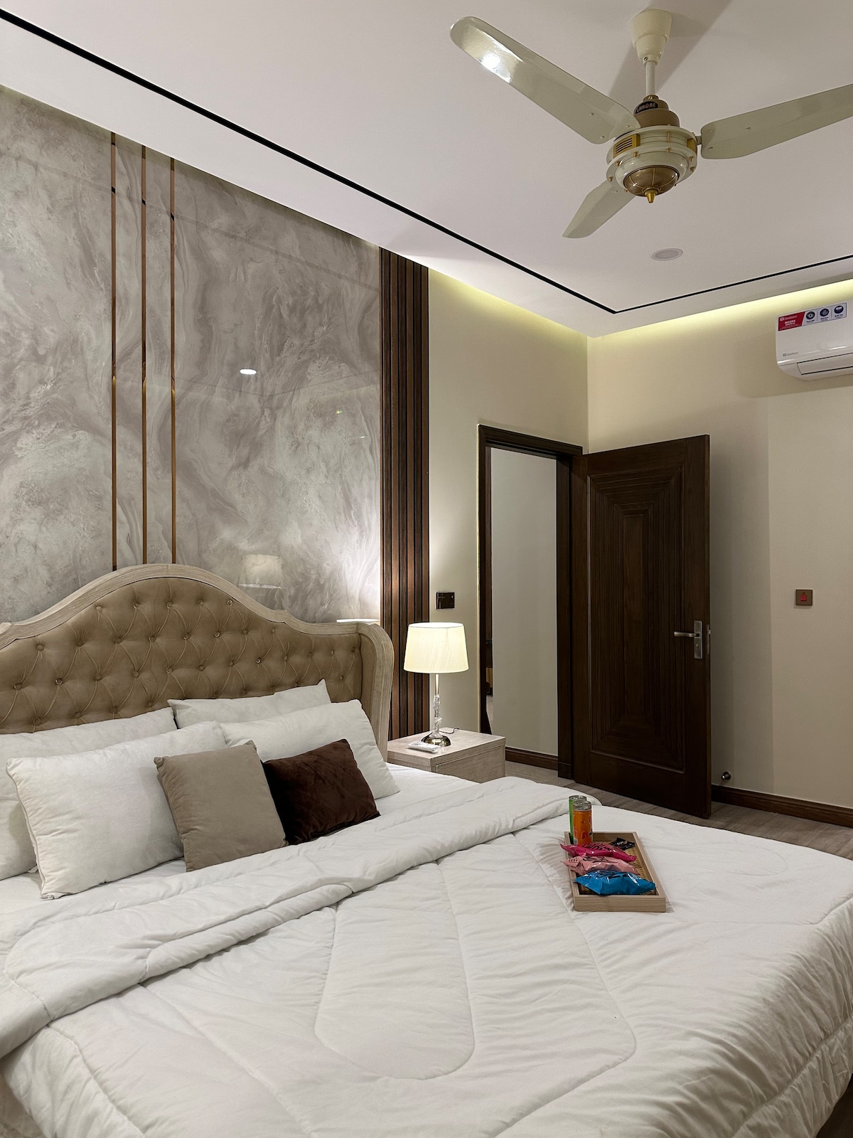 🛏️ Letto king size e balcone privato con vista mozzafiato. 📺 Smart LED da 55" e WiFi da 30 Mbps. 🍽️ Cucina moderna con elettrodomestici di alta qualità. ❄️ Condizionatori inverter e 💨 deodoranti automatici per ambienti. 🔐 Serrature digitali e arredi eleganti. 🏙️ Sopra Zeta Mall, a pochi passi da Giga Mall. 🌄 Vista sulla città e sulle colline. Perfetto per famiglie, coppie e ospiti aziendali. 🪪 È richiesta la CNIC (18+). 🚭 Vietato fumare/tenere eventi. ✅ Prenota ora per goderti il lusso e la serenità.