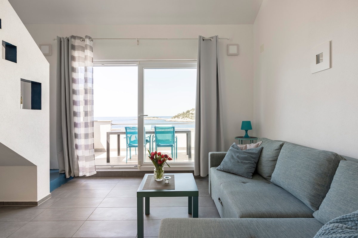 Il nostro appartamento di 45 m² è ideale per 2 o 3 persone. Puoi godere di una cucina attrezzata, un soggiorno soleggiato, un bagno funzionale e una camera da letto confortevole. Stiamo attualmente ristrutturando la cucina e le piastrelle del pavimento, quindi quest'estate (2024) sarà tutto nuovo di zecca. E la parte migliore è la terrazza con vista sulla baia, orientata a ovest, con splendidi tramonti.
