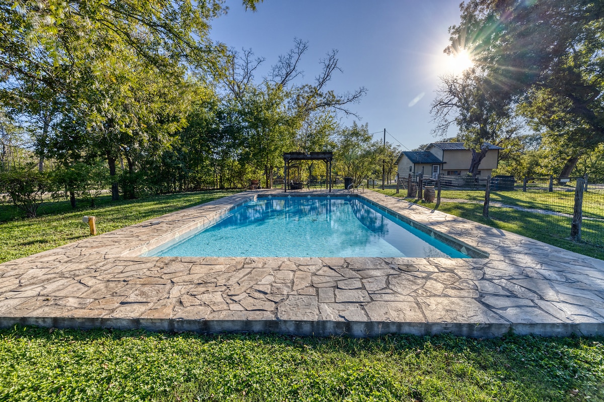 Rifugiati nella nostra casa sul fiume Nueces, che si estende su 5 ettari e offre un mix perfetto di bellezza naturale e comfort. Situata a nord di Camp Wood, in Texas, questa casa storica, recentemente ristrutturata, può ospitare comodamente 12 persone e promette un rifugio sereno. Un'esperienza unica sul lungofiume, con accesso al fiume Nueces. Il cuore della casa è la sua grande terrazza, perfetta per ammirare gli splendidi tramonti del Texas o per riunirsi intorno al focolare. Forniamo anche kayak per esplorare, altalene sull'albero e amache per il massimo relax.