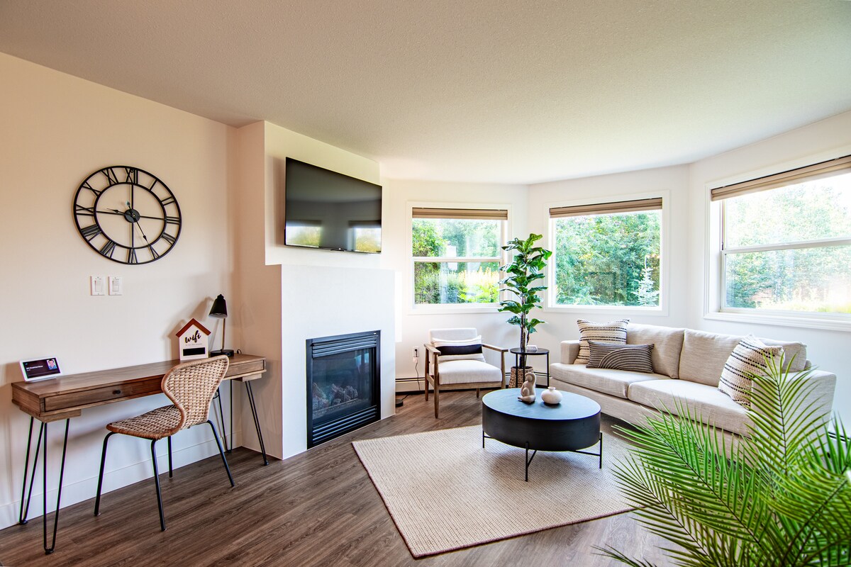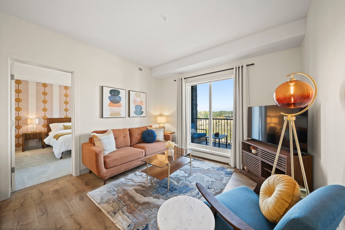 Immergiti nel comfort, nel carattere e nel fascino di questa moderna suite in stile retrò con 2 camere da letto e 2 bagni (2 letti king-size), situata in posizione ideale nel vivace quartiere Capstone di Red Deer. Accoccolato accanto al fiume Red Deer con viste panoramiche, sentieri e caffè a pochi passi di distanza, questo è più di un semplice posto dove soggiornare: è un'atmosfera. La suite unisce tocchi moderni e retrò con la semplicità dei comfort di oggi. Che tu sia qui per esplorare, rilassarti o lavorare da remoto, adorerai la disposizione accogliente e spaziosa, l'arredamento curato e l'atmosfera.