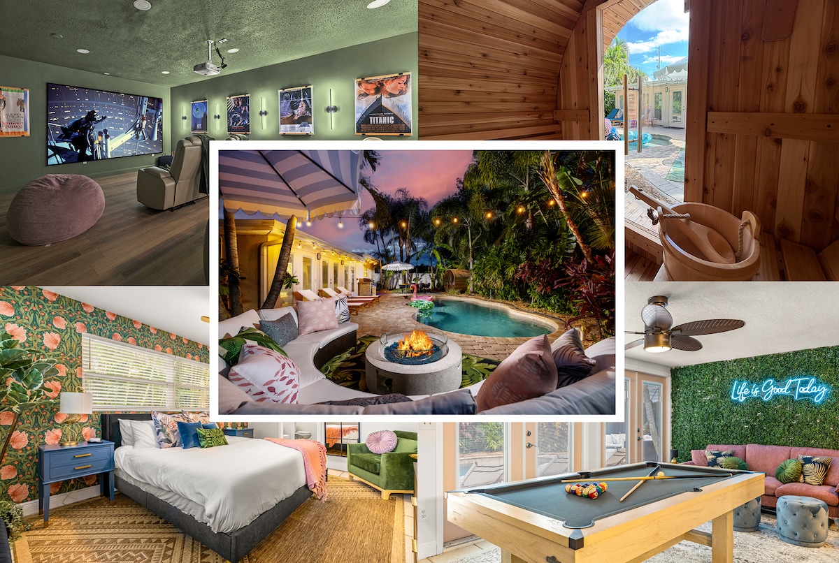 4BR-Heated Pool-Sauna-Fire Pit-Theater-Beach<5 Min