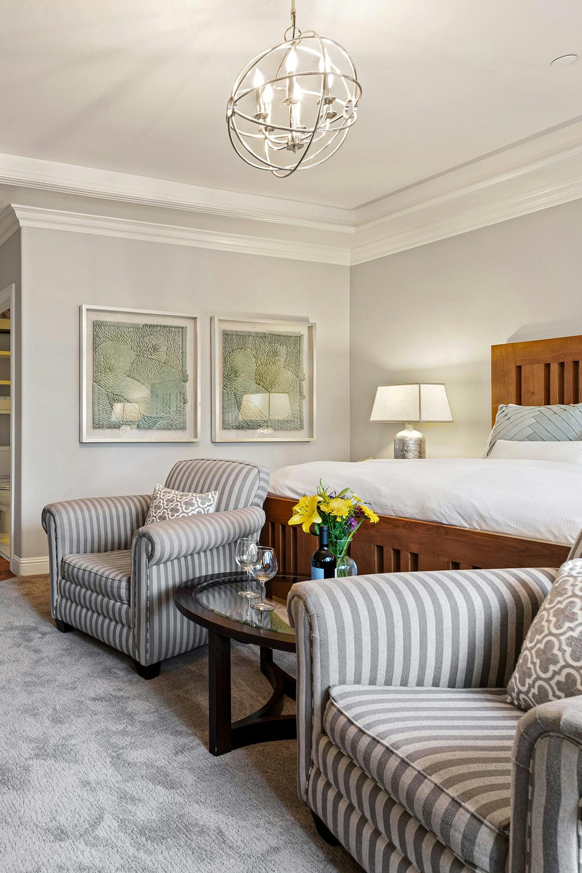 Escape to The Kingsley, a chic A-frame boutique hotel in a quiet wooded setting in Lake Arrowhead. Your private Queen Studio is a perfect mountain retreat for two. It offers a modern, comfortable stay with fast Wi-Fi and Smart TV. Enjoy shared access to our cozy Clubhouse and outdoor fire table. Just minutes from Lake Arrowhead Village and SkyPark, it's the ideal base for your adventure.