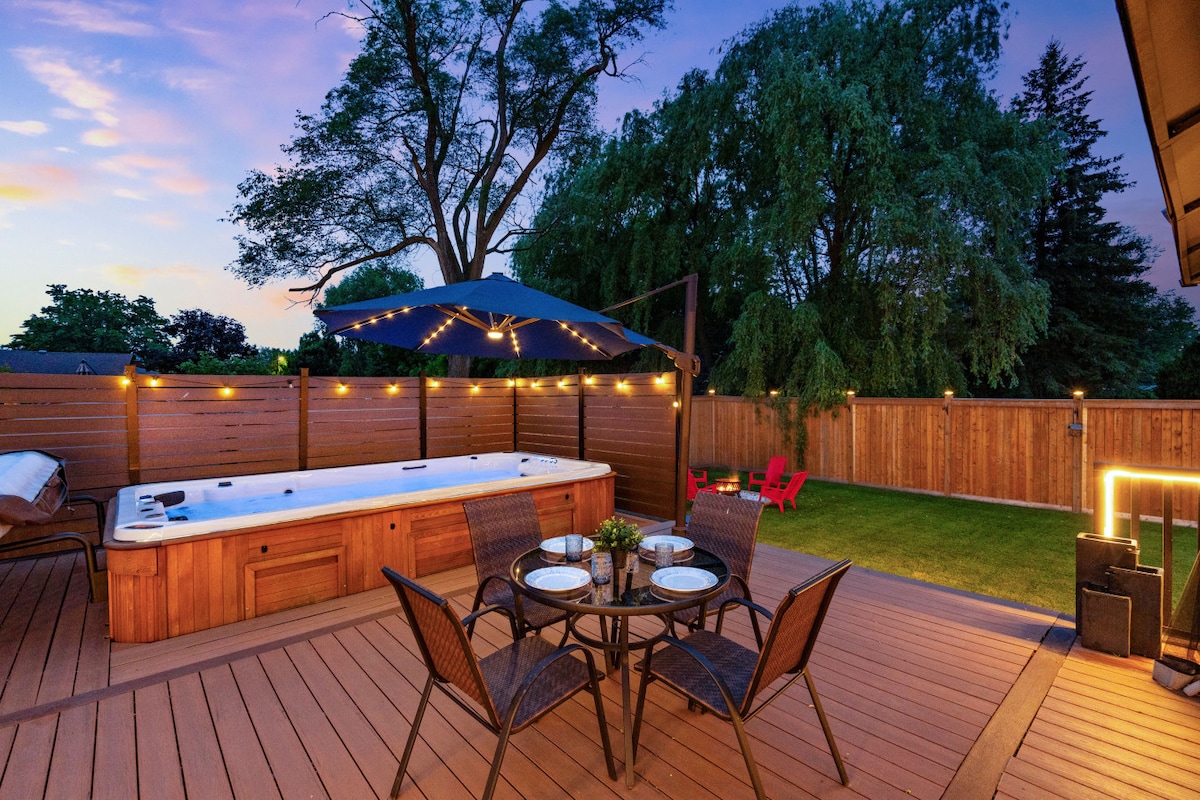 ***NUOVA VASCA IDROMASSAGGIO PER LA STAGIONE 2024 Questa casa privata completamente ristrutturata si trova nel cuore della regione vinicola del Niagara, a pochi chilometri dal centro storico di Niagara sul lago. Puoi rilassarti nell'ampio cortile con vista sui vigneti o sorseggiare il caffè del mattino nel portico anteriore. Goditi una bella cena nel nuovo patio, rilassati vicino al fuoco di notte nelle tue sedie adirondack o immergiti nella vasca idromassaggio. Abbiamo tutto! Minimo 3 notti nei fine settimana dal 15 giugno al 15 ottobre e in tutti i fine settimana festivi