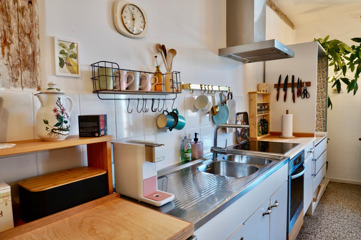Appartamento di 50 m² in una casa in legno di nuova costruzione (2022). Il punto forte è il balcone in legno di 15 metri costruito tra gli alberi. Cucina moderna in legno in stile inglese, frigorifero, piano cottura elettrico, lavastoviglie, frullatore, macchina da caffè SMEG, TV, 1 camera da letto con letto 180x200 cm e 1 piccolo letto singolo. Un divano futon che si converte in un posto letto 180x200 cm può essere utilizzato come posto letto extra nel soggiorno.