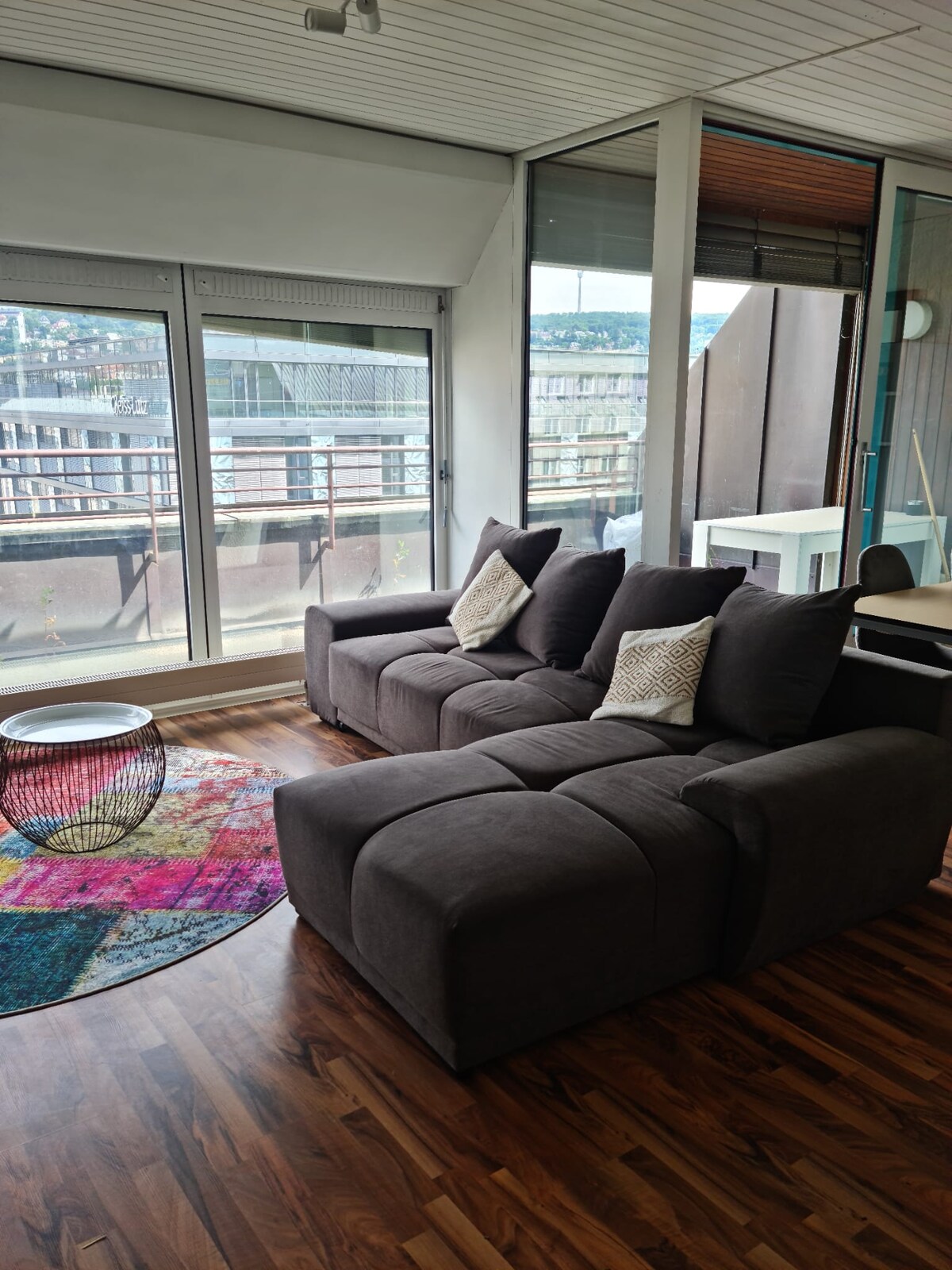 Elegante attico direttamente sulla Königstraße nel cuore della città di Stoccarda, con balcone e vista panoramica sulla città fino alla torre della televisione. Spazioso soggiorno, accogliente letto matrimoniale, divano letto, TV a schermo piatto con Netflix e streaming, cucina e bagno moderno. A solo 1 minuto dalla stazione centrale e da Schlossplatz. In loco: ristorante e club di alto livello "Cavos Taverne" – mangiare e festeggiare direttamente davanti alla porta. Perfetto per viaggi in città e per lavoro.