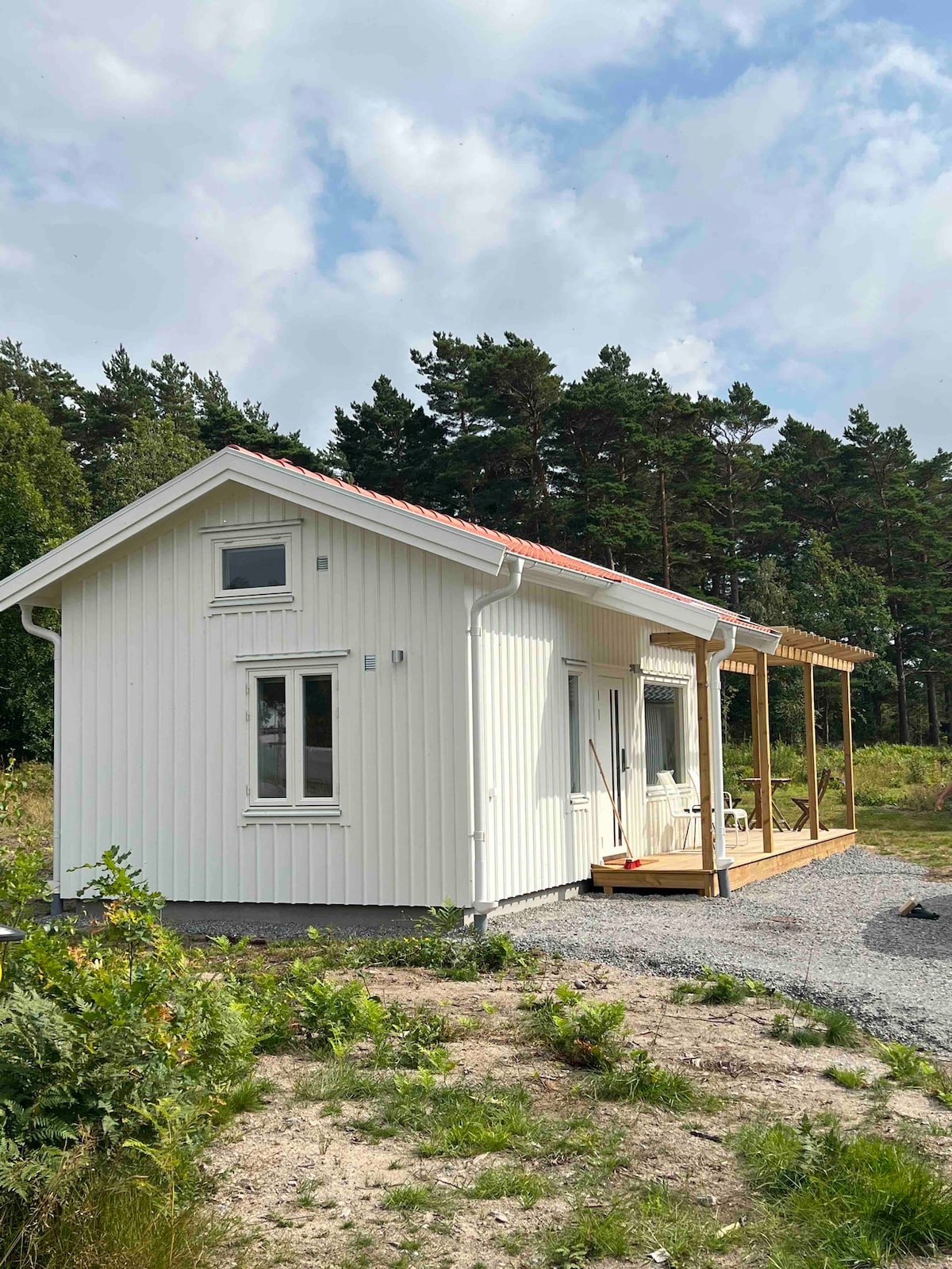 Baita di nuova costruzione direttamente adiacente alla riserva naturale di Tjurpannan con sentieri escursionistici in splendidi dintorni. Il cottage si trova su un terreno naturale con scogliere, riso ai mirtilli e pini. La trama si affaccia sulla riserva naturale a ovest e sui pascoli di pecore e cavalli a est. A solo un paio di centinaia di metri di distanza si trova un campeggio con ristorante, mini life, mini golf e noleggio barche. A pochi passi ci sono diverse accoglienti baie balneabili tra cui scegliere. La pesca del granchio è un'attività popolare per tutte le età