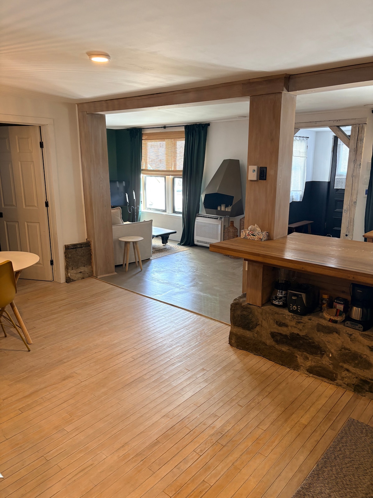 Questa casa di nuova costruzione si trova nella nostra proprietà di 36 ettari. È circondata da un frutteto, un vigneto e un bosco. L'ambiente pittoresco e naturale è perfetto per coppie, viaggiatori solitari o famiglie. Nella proprietà è possibile praticare sci di fondo, corsa ed escursionismo. Le piste da sci alpino di Bromont e Sutton distano 35 minuti di auto. Jay Peak, nel Vermont, dista 1 ora e 15 minuti in auto. Le strade di campagna circostanti offrono meravigliose gite in bicicletta.