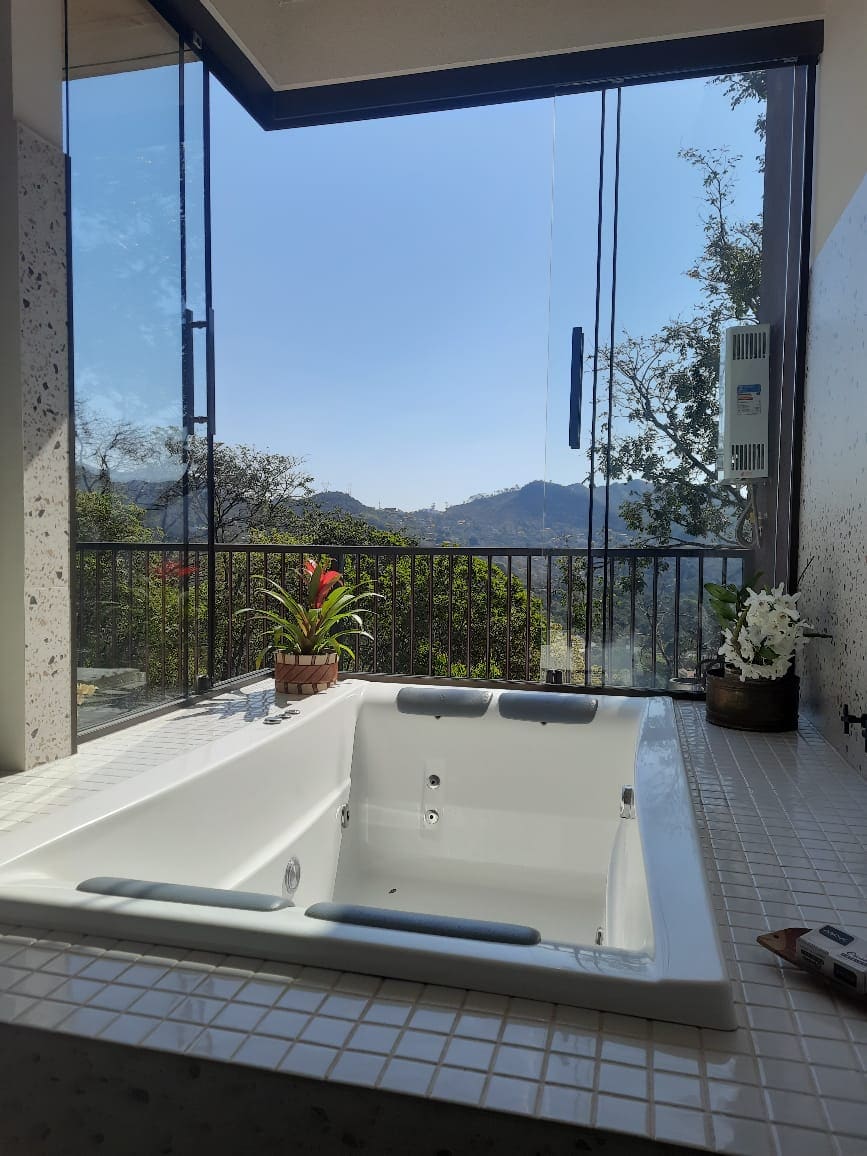 Casa di nuova costruzione, architettura moderna, ariosa, luminosa, ambienti chiari, sala vetrata creando una totale integrazione con la natura circostante e permettendo di godere della vista della montagna, della valle e del tramonto, progetto illuminotecnico che offre un'atmosfera di comfort, area gourmet con una bella vista. Casa che offre tutti i comfort per un funzionamento adeguato e confortevole. All'interno del Condominio Retiro do Chalé, molta sicurezza, comfort e natura, a 31 km da Inhotim.