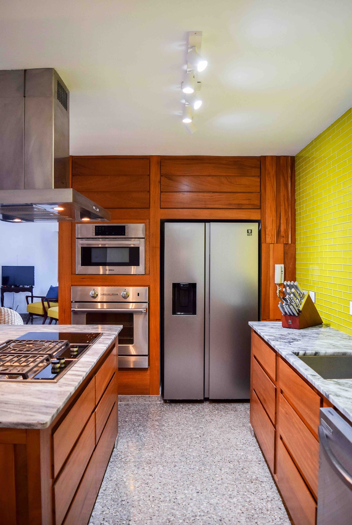 Il nostro bellissimo loft si trova all'ultimo piano di un edificio neoclassico nel cuore del Vedado artistico alla moda, a pochi passi da ristoranti alla moda, locali notturni di intrattenimento, Hotel Nacional, Malecón e a 5 minuti di auto dalla Havana Vecchia. Progettato intorno a un'interpretazione contemporanea dell'architettura coloniale, l'open space di 5 metri di altezza presenta livelli rialzati che si estendono da un lato all'altro dell'appartamento e ampie terrazze sul tetto con aree pranzo/salotto che offrono viste mozzafiato sull'Avana.