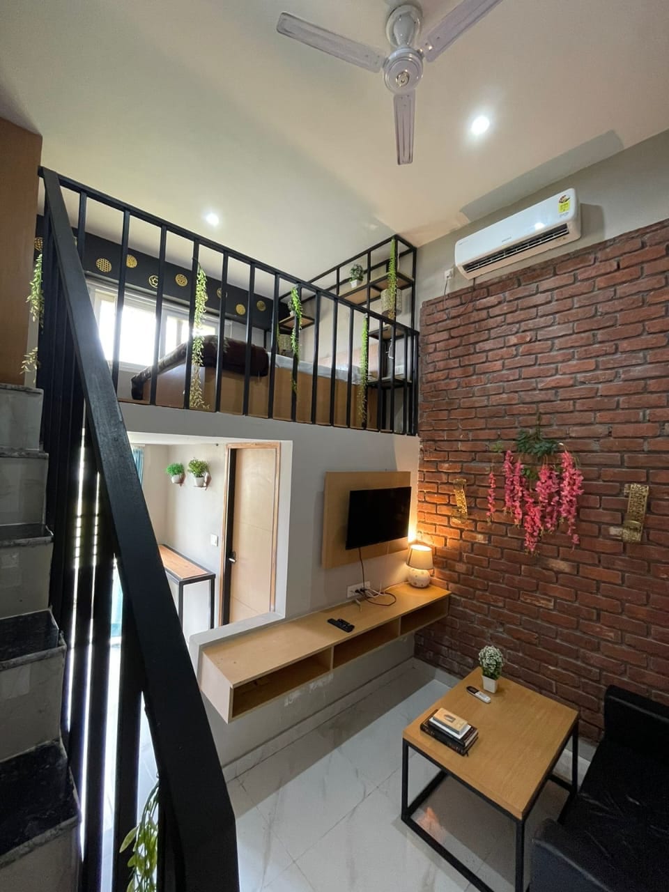 Spacious and thoughtfully designed 2BHK apartment with 2 large private balconies, located in a peaceful locality away from city noise. The property is fully equipped with a functional kitchen and all essential utilities, high-speed Wi-Fi, Smart TV, and free parking One balcony features a cozy, romantic cabana-style seating area, perfect for morning coffee, evening conversations, or quiet downtime with your loved one. Ideal for couples, families, and small groups looking for a relaxing getaway.