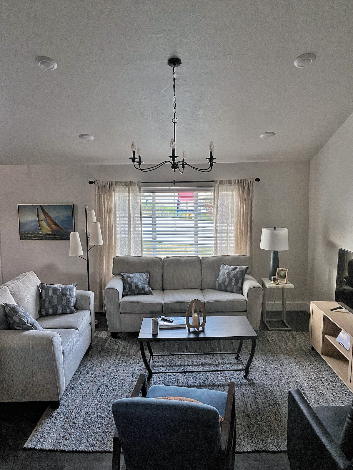 Benvenuto nella nostra suite seminterrata! Questo appartamento si trova nel seminterrato della nostra casa di famiglia. Per accedere è necessario accedere al nostro garage e alla porta sul retro condivisa. Una volta dentro, scendi al piano di sotto dove avrai una camera da letto privata, bagno, sala giochi/fitness, family room e angolo cottura. Viviamo al piano di sopra e possiamo essere disponibili se ne hai bisogno. Comodamente situato vicino alla I-15 e alla I-84, a un'ora dalle principali stazioni sciistiche. Ottimo posto dove stare se si passa o si soggiorna per un po'.