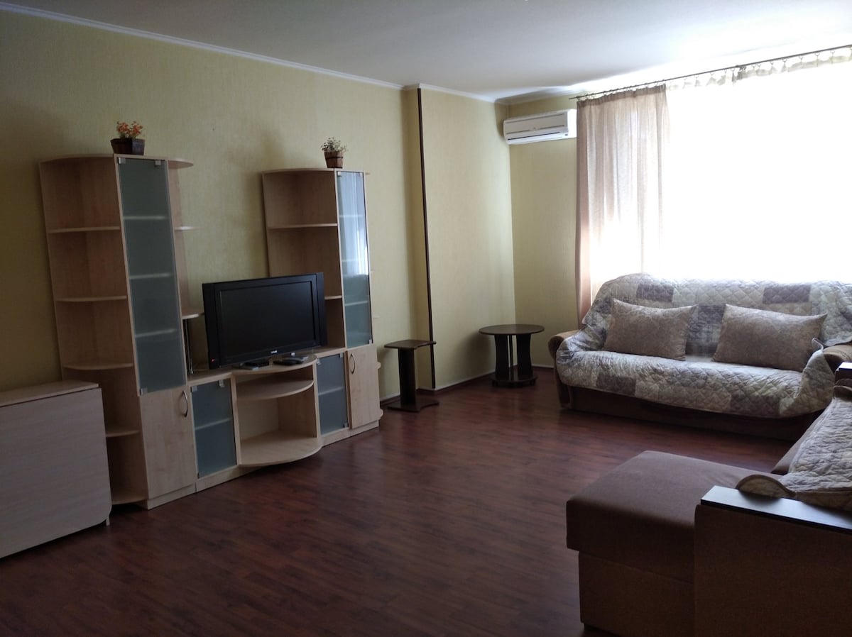 Appartamento confortevole, spazioso e caldo. Nel cuore della città. Con un pavimento caldo e un balcone. Abbiamo la possibilità di ospitare tre persone, in quanto c'è un grande letto matrimoniale e un divano pieghevole. Aggiungere prodotti per l'igiene personale. L'acqua calda centrale è costantemente disponibile. La posizione del complesso residenziale è bellissima, situata nel centro della città, l'intero interscambio dei trasporti in qualsiasi angolo della città, ristoranti, caffè raggiungibili a piedi. Disponiamo di un parcheggio per gli ospiti con auto. Non vediamo l'ora di ospitarti.