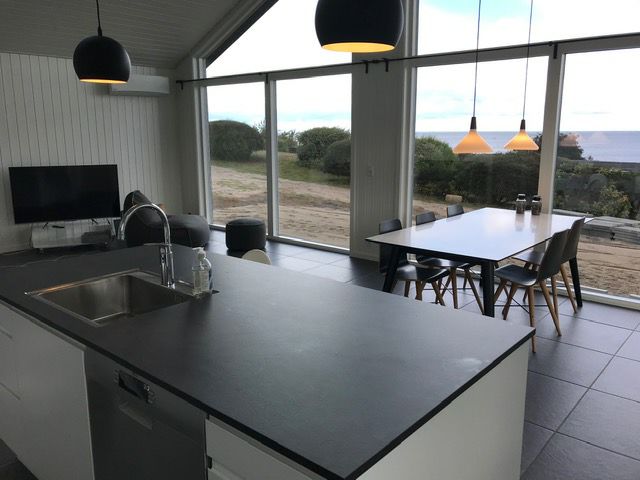 Godetevi una vacanza in un ambiente bello, idilliaco e accogliente nella casa estiva in legno rosso di nuova costruzione "Søglimt". Il nome della casa è un po' fuorviante, perché dalla grande cucina non c'è solo un barlume di mare, ma una vista panoramica a 180 gradi sul Mar Baltico. Qui si può sedere con un bicchiere di vino bianco fresco o una deliziosa tazza di caffè e tenere d'occhio i bambini che nuotano dalle rocce, o semplicemente godersi il suono e la vista delle onde e studiare le navi che passano lentamente.