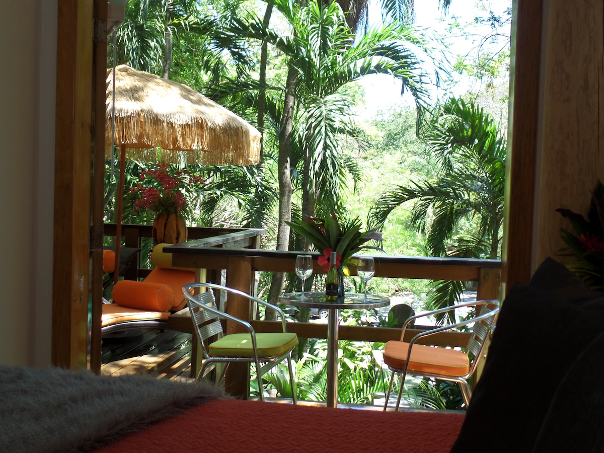 Benvenuti a Casa Mono, una vivace casita in stile "studio" incastonata nel lussureggiante giardino di Puerta Azul. Perfetta per gli ospiti in cerca di una "casa lontano da casa", Casa Mono è dotata di una cucina, un accogliente letto matrimoniale grande, un letto singolo aggiuntivo, un bagno privato e un portico di grandi dimensioni. Rilassati sulla tua amaca personale, sorseggia un caffè sulle sedie adirondack o passeggia fino alla spiaggia, a meno di 1 minuto a piedi dalla proprietà.