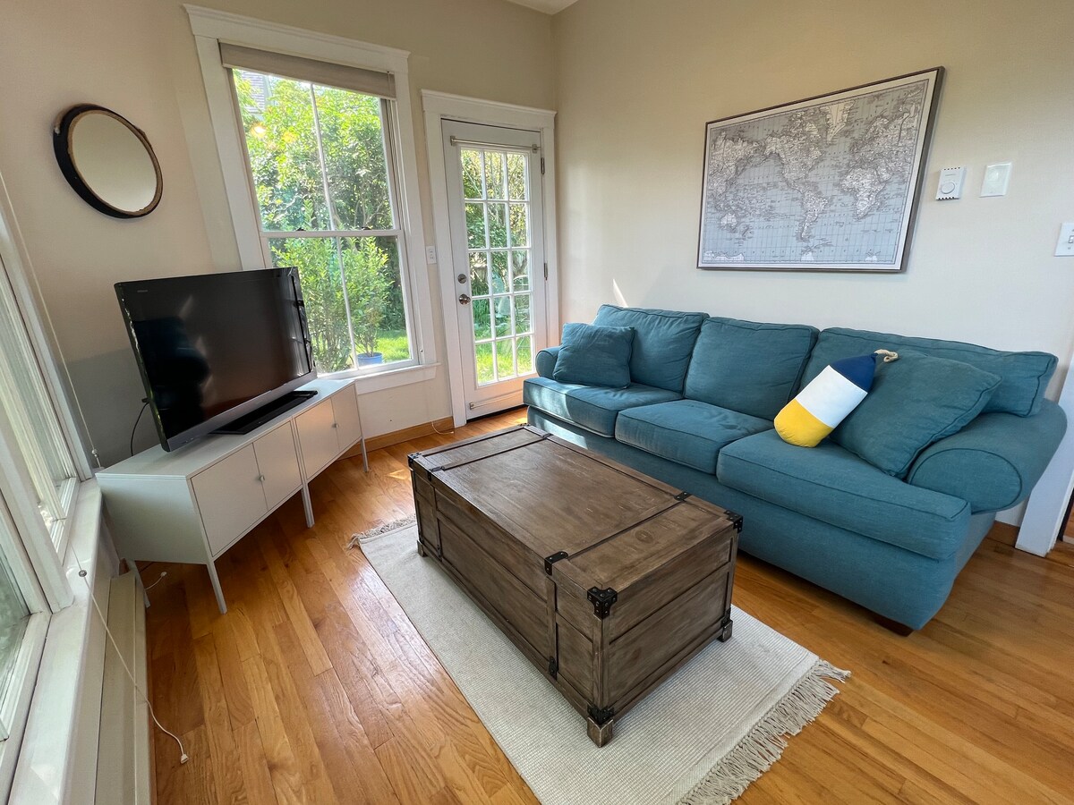 Come to Rockport this spring and stay at this renovated waterfront apartment in a historic home with onsite parking, yard and a private entrance. Our prime downtown location is steps from beaches, restaurants, coffee shops, live music, and shopping on Bearskin Neck. Features full kitchen and bathroom with new applicances and fixtures. Living room has a loveseat, swivel chair, dining table, coffee table, roku TV, games, puzzles & books. Kitchen has a fridge, stove, oven, microwave and Keurig.