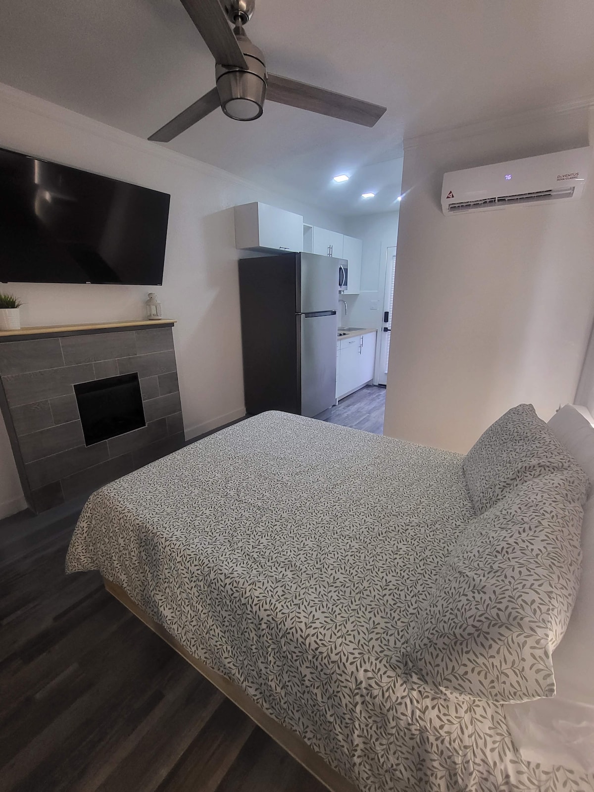 Rilassati e ricaricati in quest'oasi di pace ed eleganza, una stanza privata con bagno e cucina privati e ingresso indipendente con serratura intelligente. Si tratta di un garage trasformato in una camera, simile a una camera d'hotel in cui lo spazio è utilizzato al massimo, progettato per due persone, è un luogo accogliente e pratico. È composto da un patio all'ingresso dove le persone possono fumare o rilassarsi quando il tempo lo permette. Dispone di un letto completo, spazio per lavorare, TV da 50 pollici, forno a microonde, frigorifero e asciugacapelli