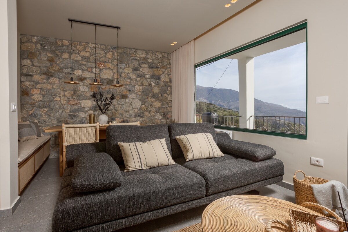 Casa tradizionale in pietra di 100 anni (74,91 m²) ristrutturata, che ricorda un rifugio. Situato in un piccolo villaggio chiamato Zourva, a un'altitudine di 650 m, nel cuore delle White Mountains. Arredato, con aria condizionata, cucina completamente attrezzata, TV e caminetto elettrico per le fredde notti invernali. Due ampi balconi con vista mozzafiato sulla foresta di cipressi e sulla gola di Tromarissa. Nel villaggio ci sono due taverne e anche due bellissimi sentieri escursionistici per chi ama le escursioni.