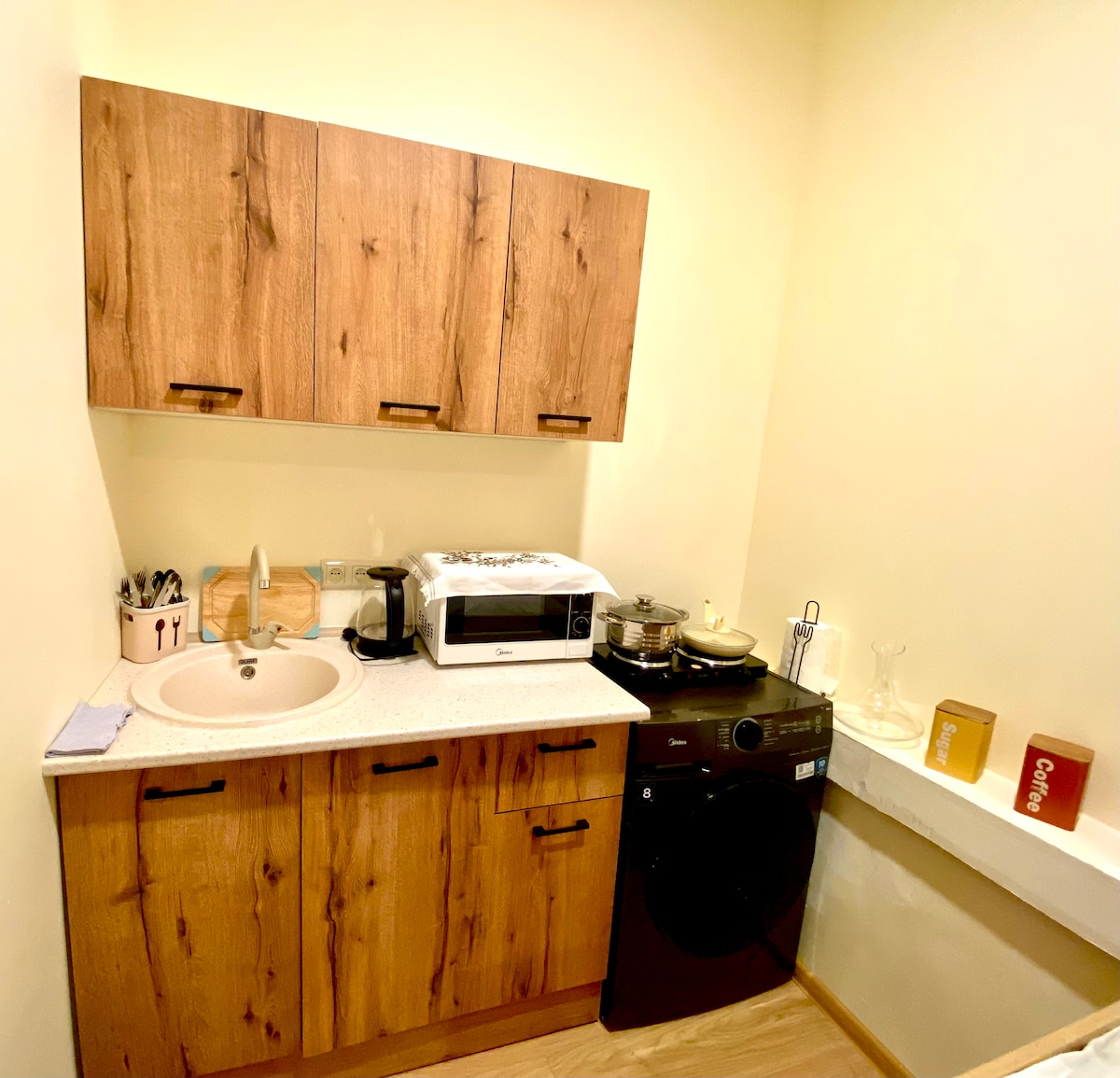 Escape to your private entertainment haven in Kutaisi! Whether it's raining or scorching hot outside, our apartment is the perfect retreat to relax, unwind, and have fun, located just a ten-minute walk from the city center. Step into a stylish and comfortable apartment designed for both relaxation and entertainment. The space is your personal cinema and game room, all in one.