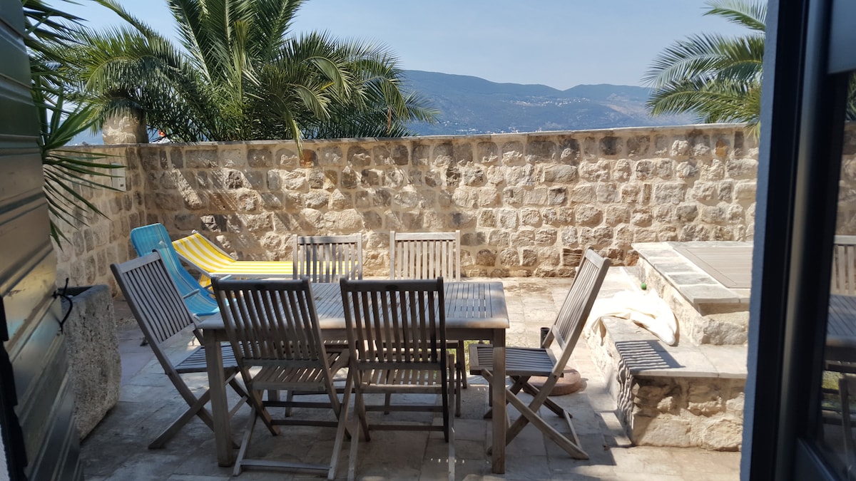 Questa vecchia casa in pietra sul lungomare è stata costruita originariamente nel XIX secolo e completamente ristrutturata nel 2018. Gli interni rappresentano un mix di uno stile tradizionale mediterraneo combinato con un design moderno. Situata in un tranquillo villaggio di pescatori che si chiama Muo, la nostra casa è la base perfetta per esplorare la baia. Il centro storico di Kotor dista meno di 10 minuti in auto, mentre l'aeroporto di Tivat dista meno di 20 minuti. La casa ha tre livelli e ogni piano ha una vista incontrastata sul mare.