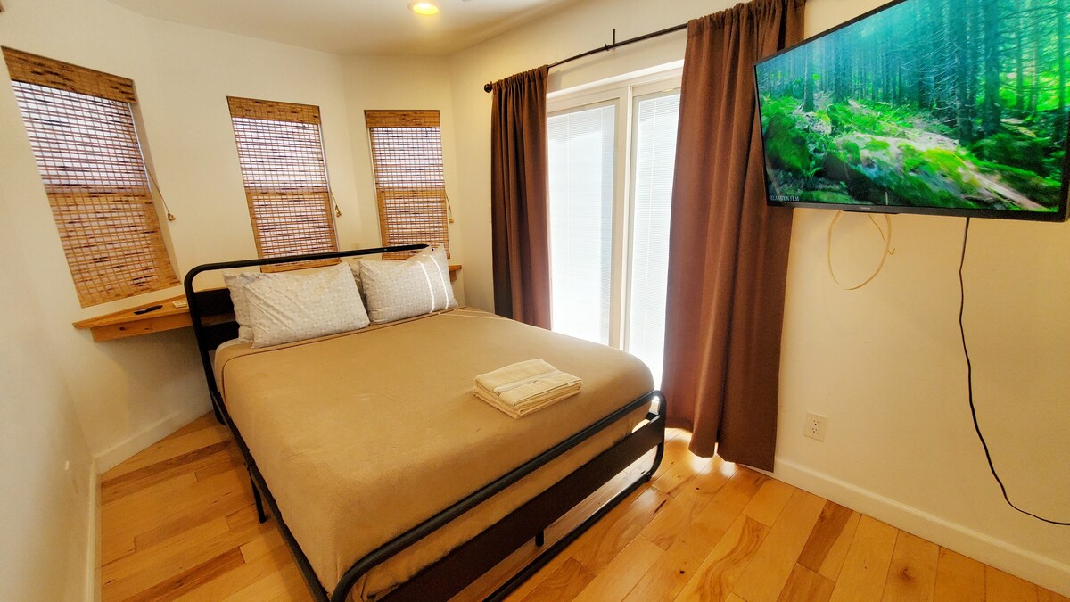 Benvenuto nel tuo rifugio sereno! Perfetta per una fuga romantica, questa incantevole suite degli ospiti offre un ingresso privato e un parcheggio designato. All'interno, goditi una spaziosa oasi con un letto king-size, un morbido materasso in memory foam e una vasca idromassaggio. Rinfrescati sotto la doccia a pioggia e goditi la vista sulle montagne dalle ampie finestre. Le tapparelle oscuranti garantiscono un sonno riposante. Rilassati davanti alla TV OLED da 55 pollici o lavora alla scrivania. Prova il comfort e la tranquillità di questo delizioso spazio!