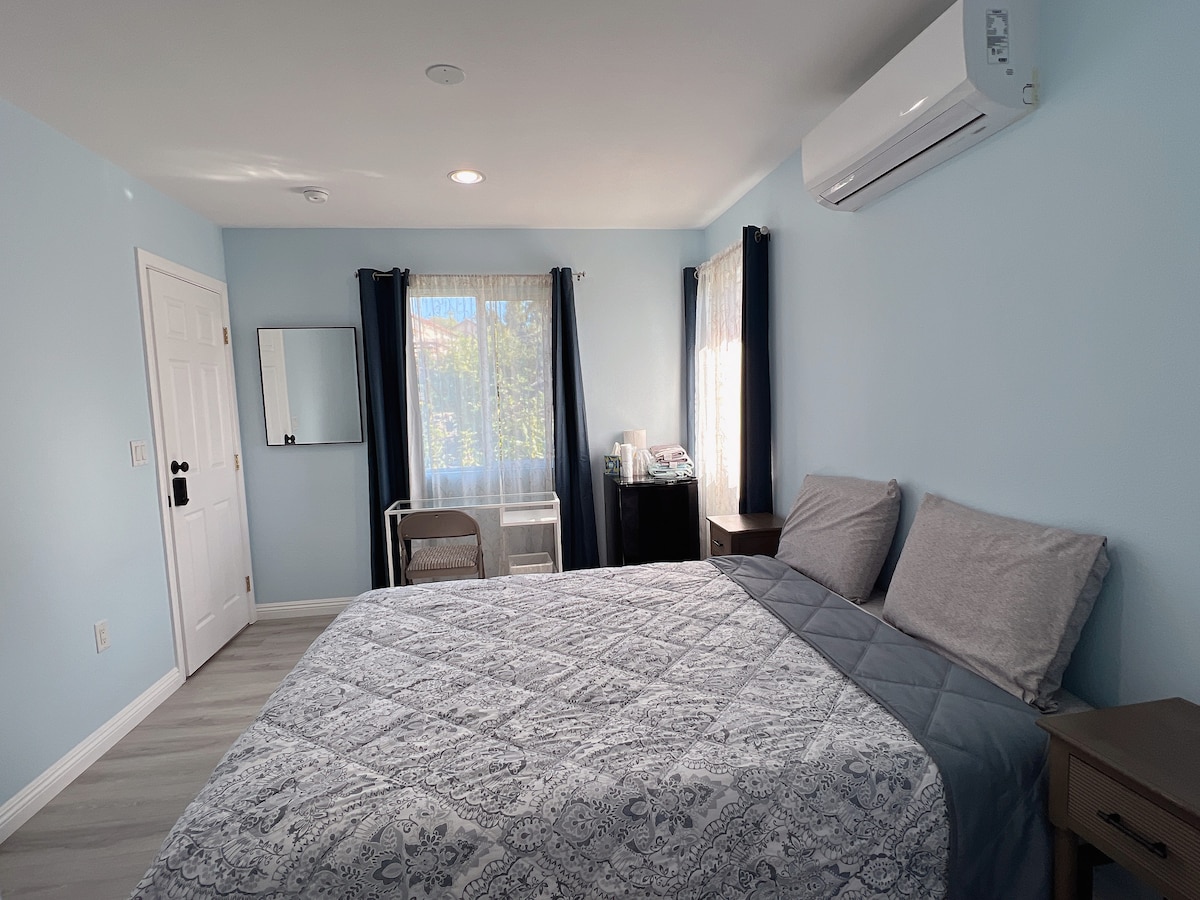 ABOUT THIS LISTING -All private SELF CHECK IN -Private entrance (will give instruction) -Private mini Patio -Lots of street parking (safe and no restrictions) -Private room and 1 bathroom -1 Queen size bed -Split type Ac/heater -40" Smart TV, antenna channel only -Hair dryer -Towels -toilet paper -House shampoo -Body / liquid Soap -Iron and iron board. -Mini fridge -Water kettle -2 seramic cup Outdoor camera for security purposes. Camera facing the walkway of the entrance