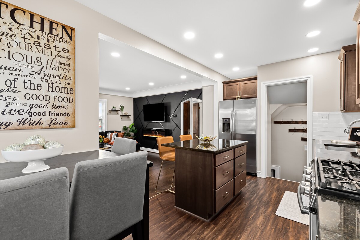 Ti diamo il benvenuto nella vita moderna di Royal Oak! La nostra casa con 4 letti/2,5 bagni è ideale per viaggi di gruppo o in famiglia. A pochi passi dalla Dream Cruise e dall'ospedale Beaumont Goditi un patio in mattoni personalizzato con braciere o il nostro bar recentemente ristrutturato con amici o familiari. La nostra casa dispone di tre camere da letto e una camera da letto a dondolo (letto a scomparsa, quindi può essere una camera da letto o un ufficio privato). Abbiamo anche due divani letto matrimoniali estraibili. Il cortile è completamente recintato. Questa è la nostra casa di famiglia, quindi ti preghiamo di essere rispettoso dei nostri meravigliosi vicini