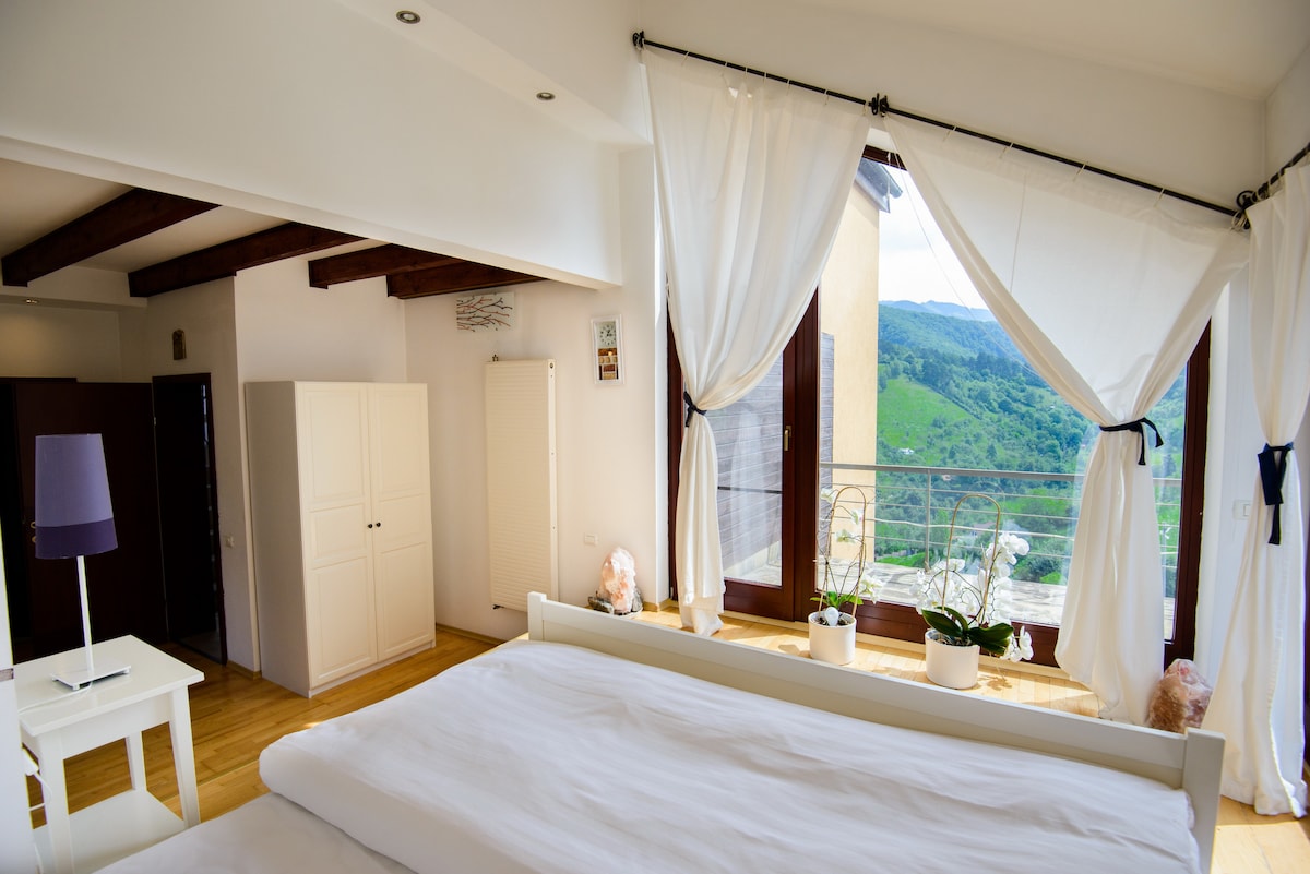 Ti diamo il benvenuto nella nostra bellissima casa in legno. Situata in una zona molto tranquilla con una spettacolare vista sui monti Piatra Craiului e Bucegi, la casa ha un facile accesso a meravigliose aree pedonali con viste eccezionali, mountain bike, percorso di arrampicata, pista da sci di Bran e "Castello di Dracula" (a 3,4 km di distanza).