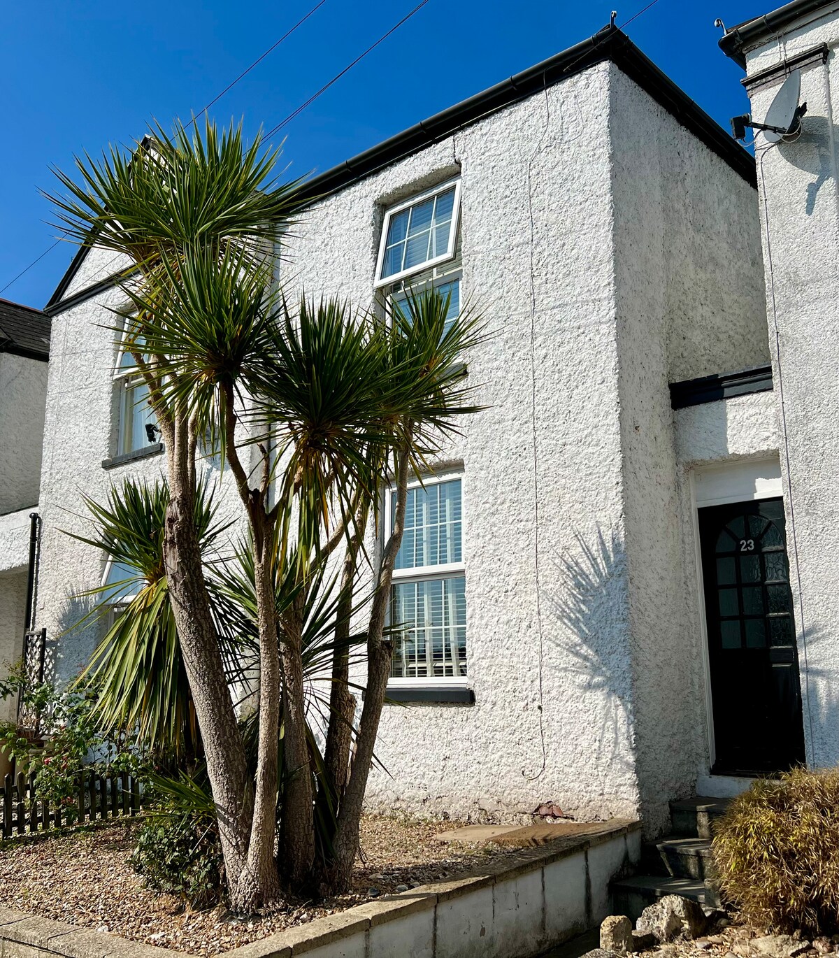Spazioso appartamento con caratteristiche d'epoca. Incantevole area salotto con 2 divani e finestra a bovindo con vista mare. TV Sky Glass da 55", ampia camera da letto con vista sul giardino posteriore. Letto matrimoniale e 1 letto pieghevole con materasso adeguato disponibili. Bagno con doccia elettrica sulla vasca. Cucina luminosa con doppie porte sulla zona del patio rialzata, perfetta per il caffè mattutino, scendendo, si arriva al grande giardino privato recintato. Permessi di parcheggio forniti per il parcheggio in strada all'esterno della proprietà