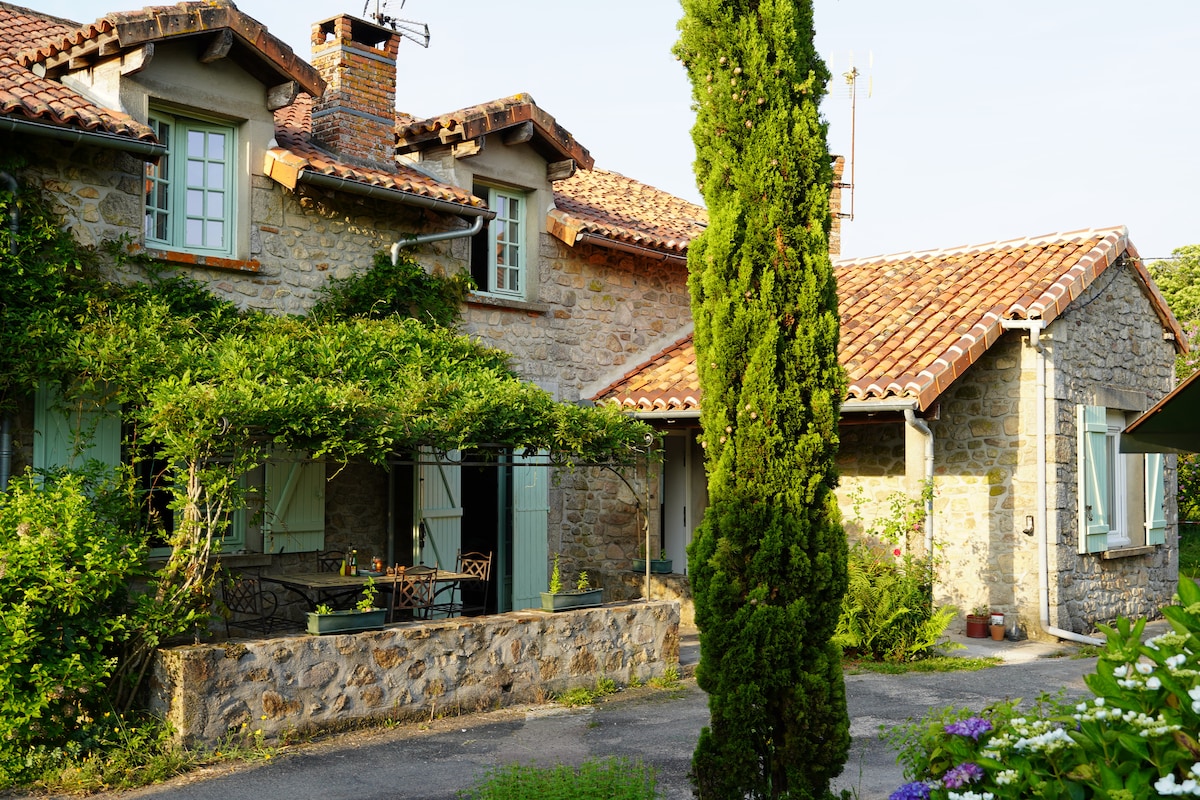 La Maison benaise, la nostra fattoria bicentenaria, accoglie viaggiatori che cercano principalmente tranquillità e natura (sito Natura 2000). Potrete godere di belle passeggiate nel paesaggio collinare della Charente. Gli sportivi possono praticare mountain bike, canoa, nuotare nel fiume o nei laghi intorno a noi o semplicemente rilassarsi con un libro e un drink sulla terrazza ben esposta. Per i bambini, i nostri quattro pony Shetland sono pronti per un piccolo abbraccio.