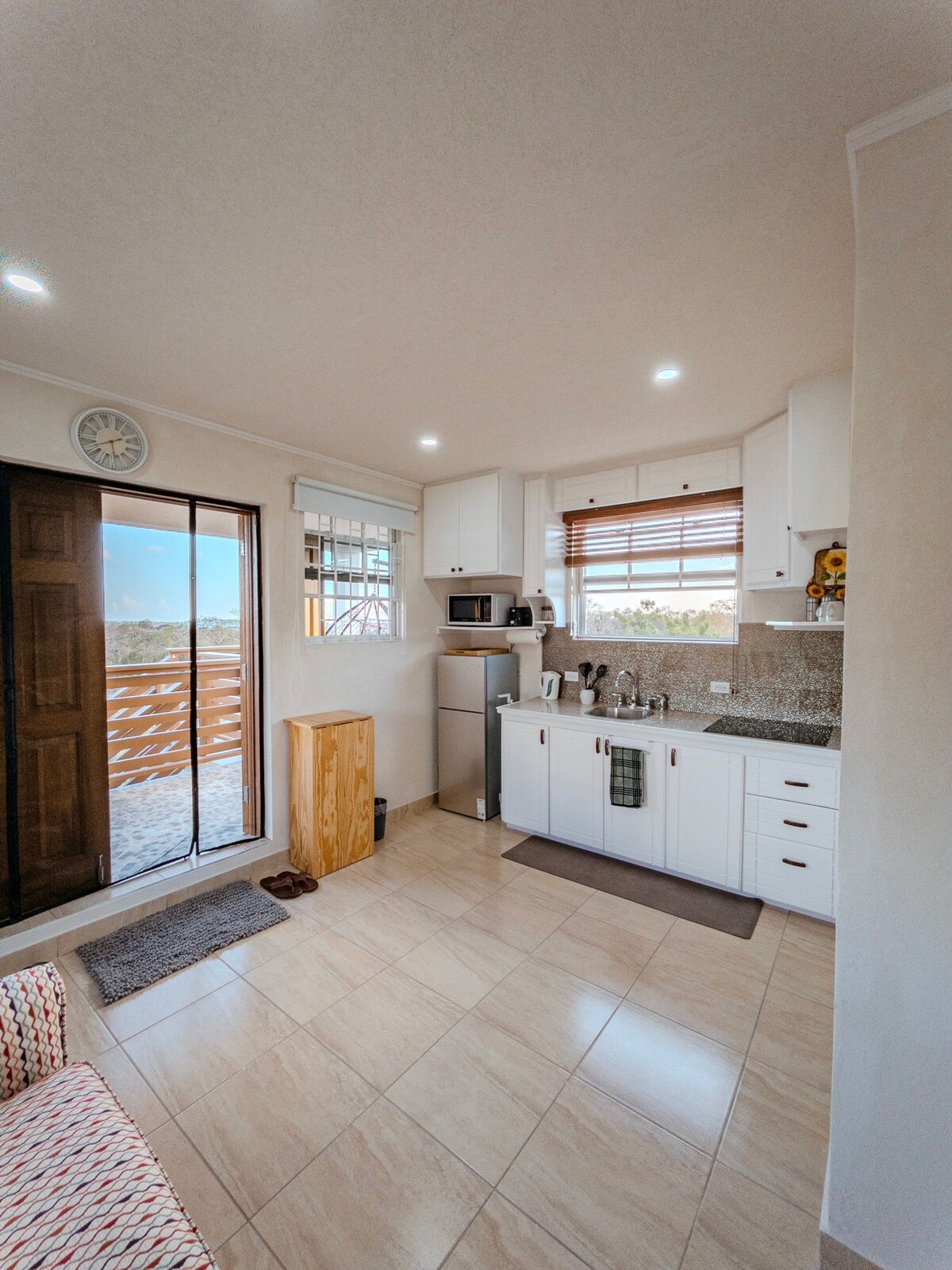 Questo appartamento è ideale per rigenerarsi dalla pressione della vita. Sarete allietati dagli uccelli, dai grilli e dalle cavallette della natura, che vi daranno il benvenuto all'inizio e alla fine di ogni nuovo giorno. Entrando nell'appartamento, sentirete immediatamente una sensazione di calma e relax. La camera da letto principale dispone di un lussuoso letto matrimoniale, che garantisce un riposo notturno riposante con un bagno privato completo. Un patio privato per respirare l'aria fresca del giorno e rilassarsi nella natura C'è una cucina completamente attrezzata per preparare i tuoi piatti preferiti e gustarli nel patio privato. Resta connesso grazie alla connessione Wi-Fi gratuita in tutto l'appartamento e resta in contatto con i tuoi cari a casa o pianifica le tue prossime avventure alle Barbados Cosa ci piace Aria condizionata nella camera da letto principale Progettato per la privacy, il relax e la tranquillità Cosa dovresti sapere Non c'è aria condizionata nel soggiorno Bambini Ideale per: tutte le età Personale Su richiesta Termini e condizioni Orario di arrivo 16.00 Orario di partenza 11:00 Non fumare all'interno della proprietà Si raccomanda a tutti gli ospiti di stipulare un'assicurazione di viaggio per coprire le emergenze mediche, l'eventuale cancellazione, eventuali danni accidentali causati durante il soggiorno presso la struttura o i cambi di volo, ecc.