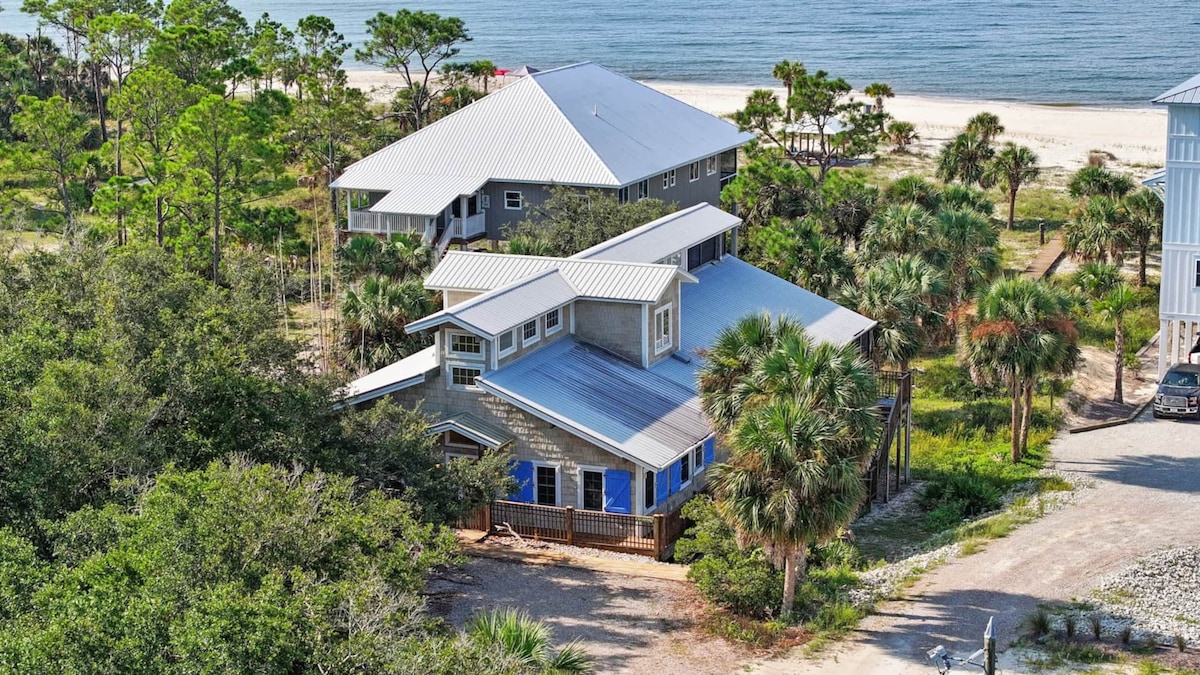 Looking for a best kept secret? Our Hip Nautic beach house on Alligator Point is located on a private beach where you can escape the crowds, enjoy a white sand beach, incredible wildlife of dolphins, sea turtles, bald eagles, deer, and much more. Relax to a simpler life that hasn't given way to high-rises and commercialism. Great local restaurants are 15 minutes from your doorstep. Tallahassee airport is a 50 minute drive. Our 4 bedroom, 2 bath beach house sleeps 10 and has incredible views.