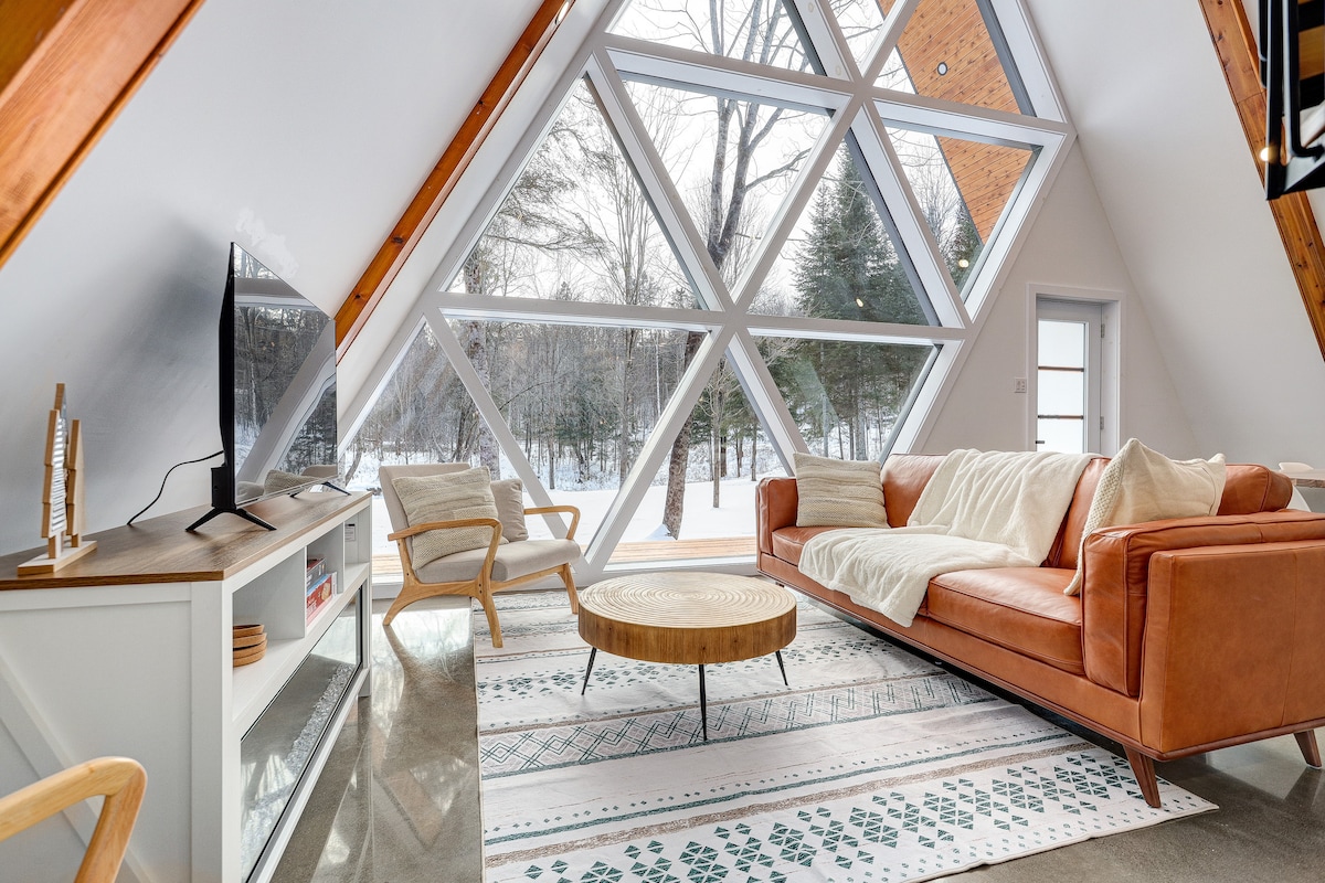 Una cupola di lusso immersa nella natura, nel cuore dei Cantons-de-l'Est Godetevi in completa intimità una vista spettacolare sul Parco Nazionale del Mont-Orford, le sue montagne e le sue foreste. Spa privata su terrazza intima, cucina completa, camino moderno, riscaldamento a pavimento, aria condizionata silenziosa, bagno di lusso con cabina doccia, parcheggio privato di fronte alla cupola, sentieri privati di 2 km su 40 acri. Laghi, montagne, foreste, vigneti, spiagge, c'è tutto. # di registrazione: 627901